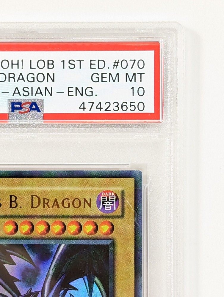 Available for sale is a 2002 Yu-Gi-Oh Red Eyes Black Dragon 1st Edition LOB-070 Asian English. This card has been professionally graded by PSA to be a perfect, Gem Mint 10. Please view all photos carefully. Multiple high quality photos have been taken of this item please use that as the detailed description. If you have any questions or concerns please contact first before committing to purchase or making an offer. The exact item pictured will be the one you receive.