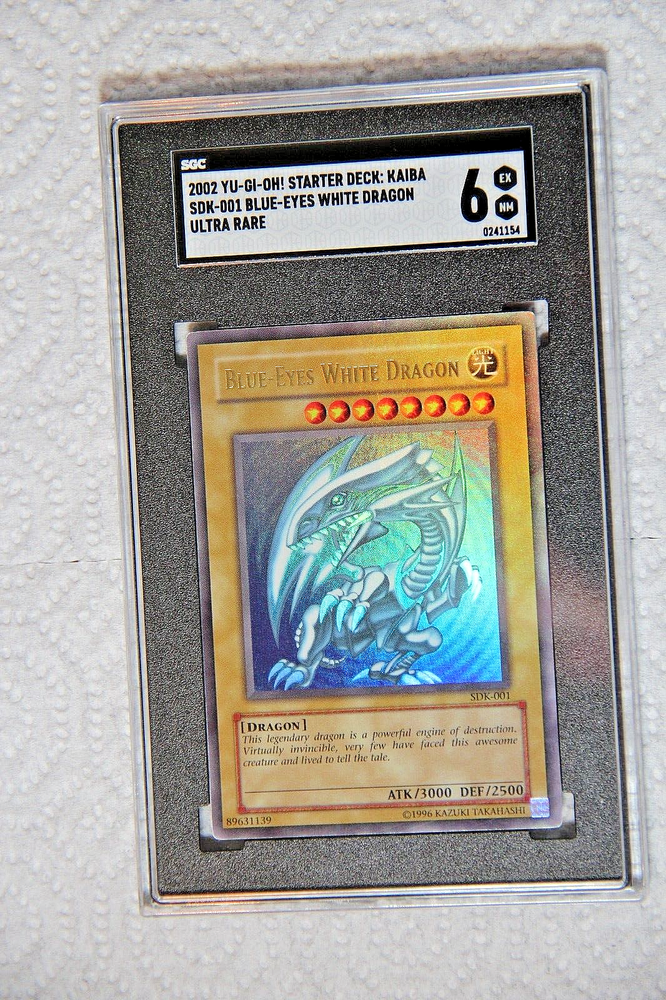This card is a rare and highly sought-after Blue-Eyes White Dragon from the 2002 Yu-Gi-Oh! Starter Deck: Kaiba. It features a stunning design and is perfect for any collector or player looking to add a powerful dragon to their deck. The card is in excellent condition and has been graded by SGC as a 6. It is a standard size and in English language. This card is a must-have for any Yu-Gi-Oh! fan or collector, and is sure to impress with its impressive stats and abilities.