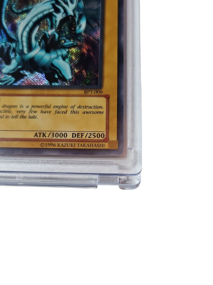 This vintage 2003 Japanese Secret Rare Blue-Eyes White Dragon is an absolute treasure for collectors! The stunning holographic foil and crisp artwork make it a standout piece. As one of the most iconic cards from the Yu-Gi-Oh! series, it’s not just nostalgic but also a valuable addition to any TCG collection. Fantastic condition and authenticity—highly recommended for fans looking for that special pull!