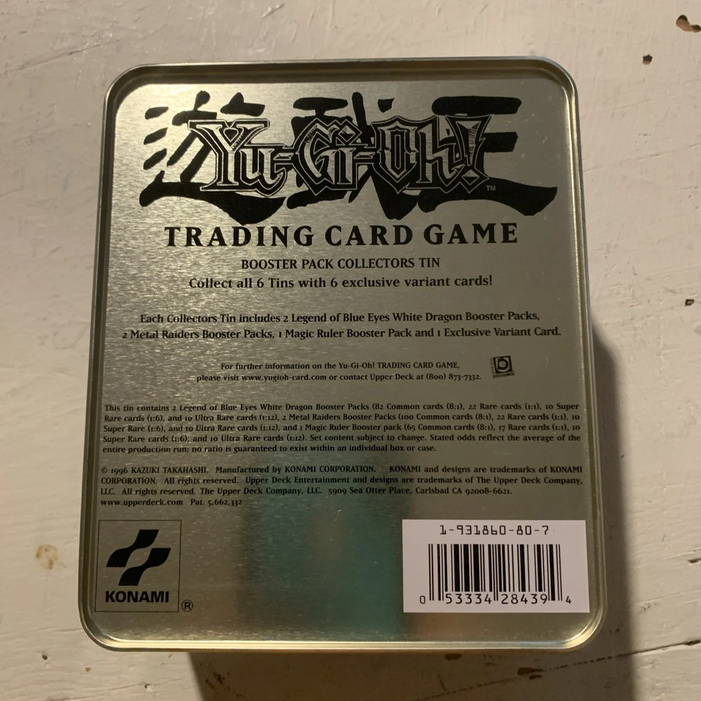 Delve into the world of strategic duels with the iconic 2003 Yu-Gi-Oh! Blue Eyes White Dragon Collectible Tin. Produced by Konami, this classic collectible is a must-have for enthusiasts and collectors alike, featuring the legendary Blue Eyes White Dragon in a striking white attribute color scheme. Crafted in the United States, the tin comes in standard card size with English language cards, ensuring a seamless addition to your collection. It's made from durable card stock material and does not include any cards, making it an excellent piece for display or to store your cherished cards safely.