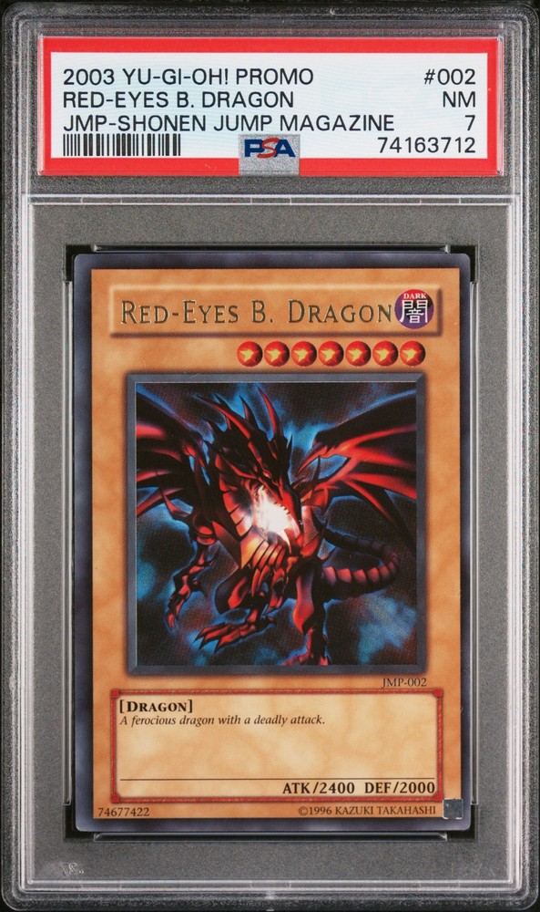 This is a nice example of a 2003 Yu-Gi-Oh! Promo Jmp-Shonen Jump Magazine #002 Red-Eyes B. Dragon Jmp-Shonen Jump Magazine Other important information about this card: PSA 7 1 NM In 2003 Red-Eyes B. Dragon played for the . Please check out our other listings for more great cards.