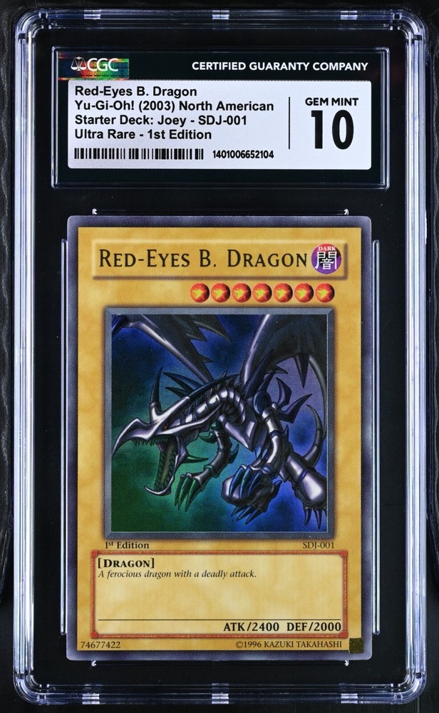 Cert # 1401006652104 Card Name Red-Eyes B. Dragon Game Yu-Gi-Oh! Year 2003 Language North American Card Set Starter Deck: Joey Card Number SDJ-001 Rarity Ultra Rare Variant 1 1st Edition Grade GEM MINT 10