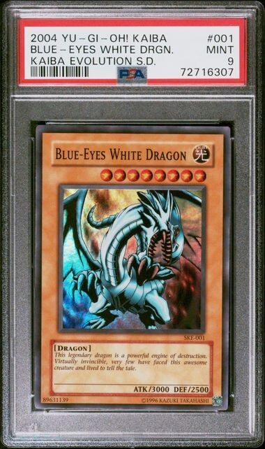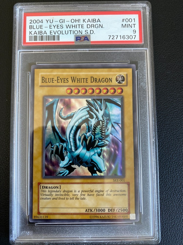 This 2004 Yu-Gi-Oh! SKE-001 Blue-Eyes White Dragon PSA 9 Mint - Kaiba Evolution card is a must-have for any collector. The card is certified by PSA and graded 9, ensuring its authenticity and quality. Don't miss out on the chance to add this card to your collection. The card will be shipped in a secure bubble mailer with tracking.