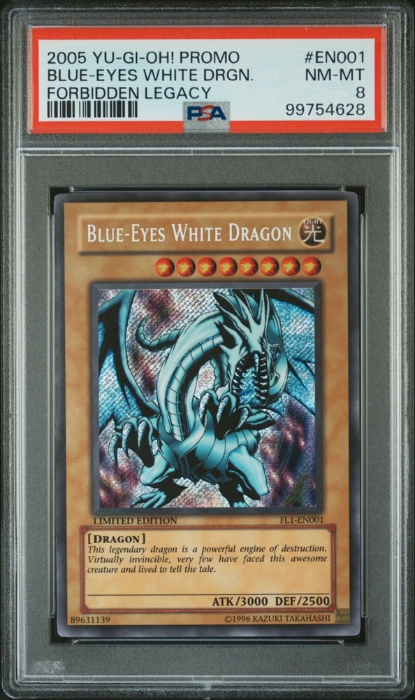 This listing is for 1copy of Blue Eyes White Dragon Promo from Forbidden Legacy FL1 EN001 graded PSA 8. The card pictured is the card you will receive. No internationalshipping. Please feel free to reach out with any questions.