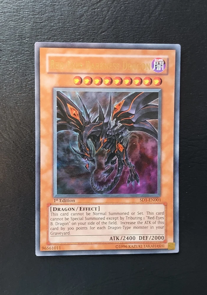 2005 YU-GI-OH! SD1-EN001 RED-EYES DARKNESS DRAGON 1ST EDITION. Condition is Ungraded. Shipped with USPS Ground Advantage.