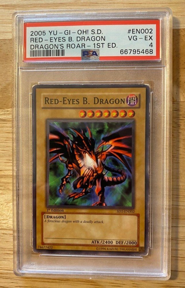 The 2005 YU-GI-OH!S.D. Red-Eyes B. Dragon Roar card is a highly sought-after collectible in the Yu-Gi-Oh! TCG. As a 1st Edition card from the Yugi set, it features the powerful Red attribute, making it a valuable addition to any deck. Graded as VG-Ex 4 by PSA, this card is in excellent condition, perfect for collectors and players alike. With its unique design and rarity, this card is a must-have for any Yu-Gi-Oh! enthusiast.