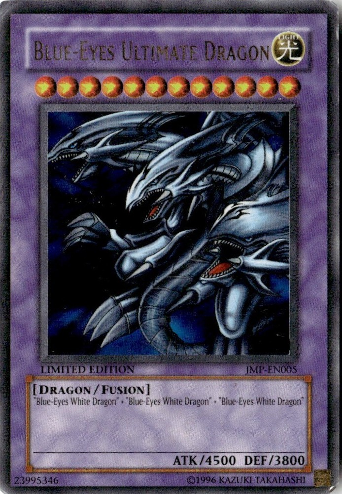About Me Other Listings Feedback Add to Favorites Contact Me eBay Store Mancave Essentials 2005 Yugioh Shonen Jump Ultimate Edition Blue-Eyes Ultimate Dragon (Ultra Rare) No stock photo / These are real scans or pictures Details Description: Blue-Eyes Ultimate Dragon (Ultra Rare) Category: Yugioh Year: 2005 Product: Yugioh Shonen Jump Ultimate Edition Card Number: JMP-EN005 Dimensions: 3¼" x 2¼" SKU: YU B0001 R01 A (24) Payment Thank you! About Us We specialize in rare collectibles, games, and memorabilia that are perfect for any man cave. Our focus is on providing high-quality, hard-to-find items that are sure to impress.From limited edition figurines to signed sports memorabilia, we have something for every collector and enthusiast. Our team is always on the lookout for new and exciting items to add to our inventory, so be sure to check back often.Make sure to give us a follow so you never miss out on the latest additions to our inventory. We are always updating our store with new and exciting items, and following us is the best way to stay in the loop.Thank you for visiting our store. We hope you find something you love and make the Mancave Essentials your go-to destination for all your man cave rare collectible needs! Listing By Kronocard trading cards software v2.7.0.1