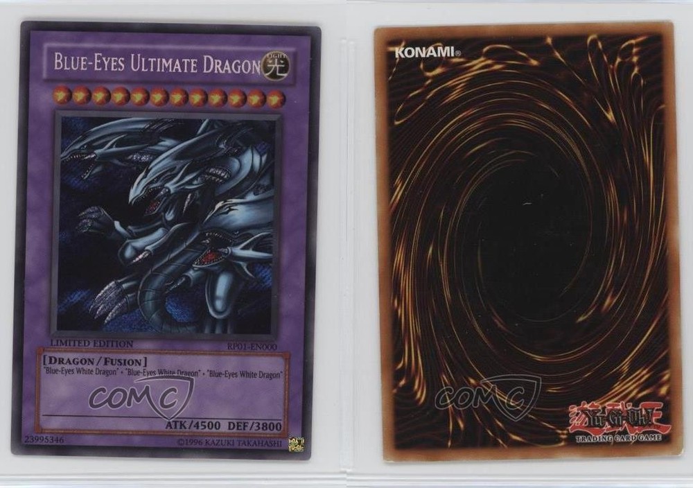 2008 Yu-Gi-Oh! - Retro Pack Promos - [Base] - Limited Edition #RP01-EN000 Blue-Eyes Ultimate Dragon COMC Item: 194218198 - YuGiOh Card - Featuring Blue-Eyes Ultimate Dragon Search for more: 2008 Yu-Gi-Oh! - Retro Pack Promos Search for more: 2008 Yu-Gi-Oh! - Retro Pack Promos - [Base] - Limited Edition View all of our Listings Auctions Buy It Now About Us Located in the beautiful Pacific Northwest, COMC (Check Out My Cards) is the world's largest consignment service for trading card singles. More than 10,000 people have used our consignment service to list over 50 million trading cards. Find out how we can help you consign your items on eBay by contacting us through eBay messaging. COMC -- "The Safe & Easy Way to Buy & Sell" Raw Condition for Modern Cards Unless otherwise noted, raw modern cards are listed in Near Mint-Mint condition or better. A NM-MT card appears to be Mint at first glance, but upon closer inspection, may exhibit some of the following: minor print defects (e.g. roller marks, print line, dimple), minor scratches, slight edge wear, and slight corner wear. Centering is clearly visible in the images provided and does not factor into our condition assessment. Raw Condition for Vintage Cards Unless otherwise noted, raw vintage cards are listed in Excellent condition or better. An EX card may exhibit some of the following: minor rounding of corners, surface wear, print defects, light scratches, and slight edge wear/chipping. Centering is clearly visible in the images provided and does not factor into our condition assessment. Domestic Shipping Combined shipping for multiple items is available. To receive combined shipping, please ensure all desired items are in your eBay shopping cart before proceeding to checkout. eBay limits orders to 40 items per order. We automatically combine multiple orders placed on the same day. If you place multiple orders on the same day, please contact us to request a refund of applicable shipping costs. Signature confirmation may be required on invoices over $400. All cards are protected and shipped securely. International Shipping COMC offers eBay's International Shipping (EIS) for international orders under $2,500* (see country exceptions below). All duties and import fees are paid at checkout; in the rare event that there are additional import fees upon delivery, these are borne by the buyer. EIS packages route through a shipping hub in Erlanger, KY before shipping to their final destination. Please note that EIS does not allow for combined shipments. The shipping rates are determined by eBay and cannot be adjusted. *Maximum sale price exceptions: Colombia, Kuwait ($2,000); Taiwan ($1,539); Chile, Costa Rica, Guatemala, Honduras, Trinidad and Tobago ($1,000); Antigua and Barbuda, Aruba, Belize, Dominica, Grenada, Philippines, Saint Kitts and Nevis, Saint Lucia, Montserrat, Turks and Caicos Islands ($500); Dominican Republic, El Salvador ($200). Please request a shipping quote through eBay messaging for orders that exceed the maximum sale price supported by eBay's International Shipping. You will be responsible for all duties and import fees for international orders shipped outside the EIS. All cards are protected and shipped securely. Payment COMC does not accept offers on our cards through our eBay storefront. COMC utilizes eBay’s managed payments system. If you are experiencing difficulties making a payment, please contact eBay for assistance. Return Policy Returns are only accepted on the rare occasion the item is not as described. If you are making a return, please initiate the return process through eBay so a mailing label can be provided for you. Prior to listing, our expert team carefully assessed this item to represent it accurately. Please review the description and high-definition images prior to purchasing to ensure this item meets your satisfaction. We welcome you to contact us if you have further questions about this item. Trust and Integrity COMC carefully assesses each item consigned to us to prevent fraudulent items from entering the marketplace. If you believe an item offered on COMC may be fraudulent, please contact us with details so we can investigate the issue. Items we determine are outside our supported items policy may be removed. Last Modified: 5/6/2025 4:11:27 AM PDT