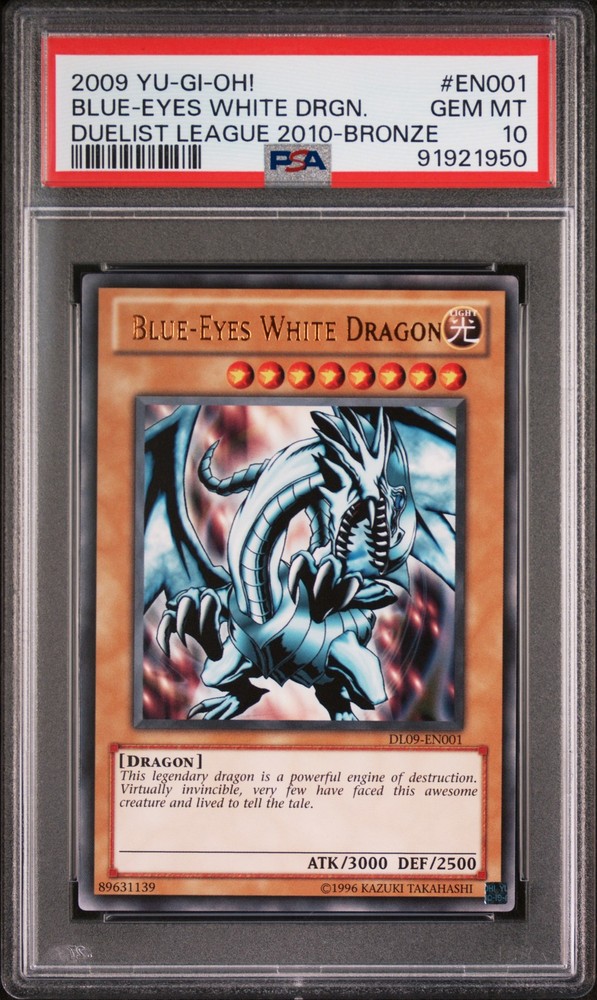 2009 YU-GI-OH! DUELIST LEAGUE 2010 COPPER #EN001 BLUE-EYES WHITE DRAGON PSA 10 2009 YU-GI-OH! DUELIST LEAGUE 2010 COPPER #EN001 BLUE-EYES WHITE DRAGON PSA 10 Purchase Info Thank you for your interest in bidding on this item consigned with PSA! By bidding on this item, you acknowledge and agree to the following terms: All sales are final. Returns not accepted. Payment must be made within 7 days of auction close. All items are sold "as is" and without warranty of Collectors Universe, Inc. (d/b/a PSA), and ANY AND ALL IMPLIED WARRANTIES ARE DISCLAIMED AND EXCLUDED. Sales tax may apply depending on shipping address. PSA does not guarantee that another third-party grading company's authentication or certification of an item as genuine is correct or accurate. Neither a difference of opinion between third-party grading companies about authenticity, nor a company's subsequent reversal of its earlier authentication or certification of an item, will be a basis for rescinding a sale. Any dispute with another third-party grading company relating to the authenticity of an item must be resolved directly with that other company. Collectors' maximum liability in the event of loss or damage to an item during shipping will be the lesser of (a) the price paid for the item and (b) the change in fair market value of the item. You release Collectors from all other liability including for any claims of punitive damages, emotional distress, consequential damages, lost profits, or lost interest, except as prohibited by law. Shipping Purchased Items will be shipped directly from PSA Vault. You stay hands-free. PSA Vault When you purchase this item, you can save on sales tax and selling fees by keeping it in the PSA Vault, official Vault of eBay. Items already in PSA Vault and will be sent to PSA Vault will have no shipping charge Storage of any items with the PSA Vault will be subject to the PSA Vault Terms of Service. Consignment PSA has competitive auction rates on the world's largest collectibles marketplace with the option to list from the PSA Vault or immediately after PSA authentication and grading. Sale Price Under $100 $100 - $499 $500 - $999 $1,000 - $2,499 $2,500 - $4,999 $5,000+ Seller Fee 13% + $3 flat 13% 12% 10% 9% 7% Sellers pay a single fee as reflected above; no additional eBay fees are incurred.