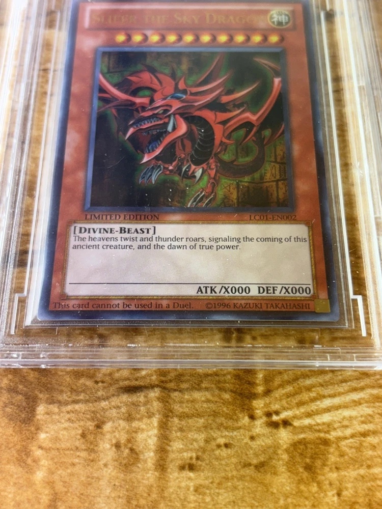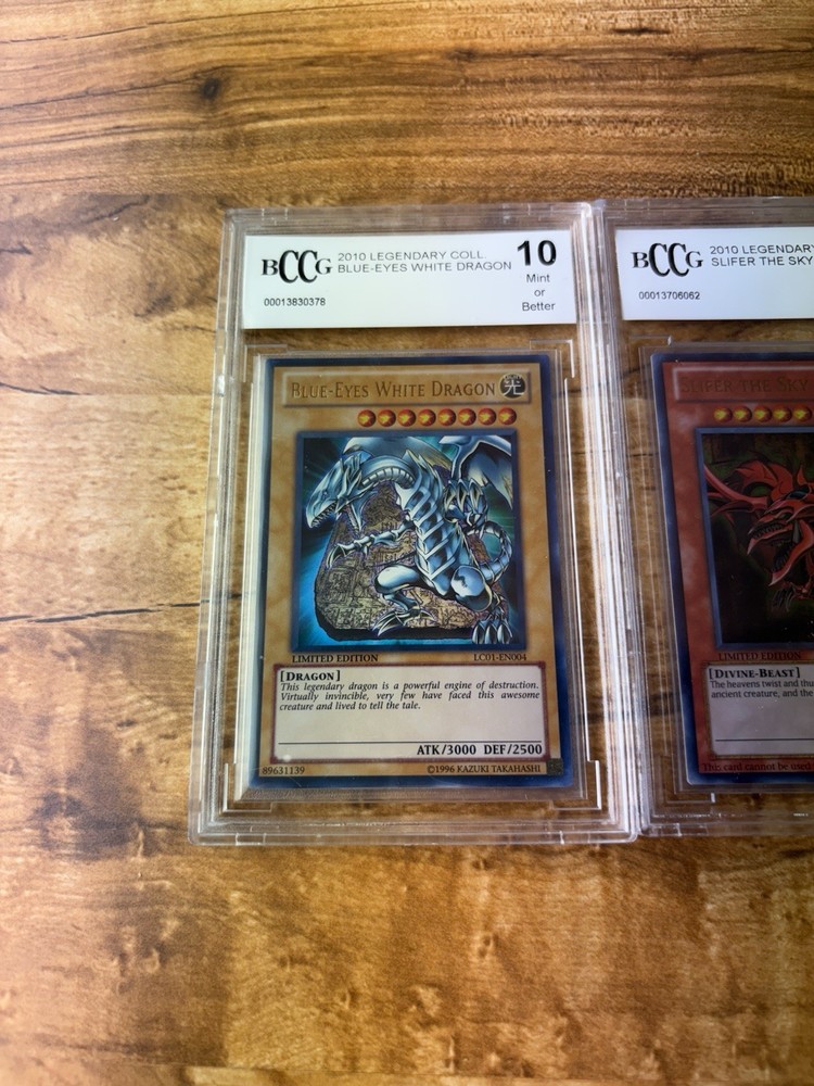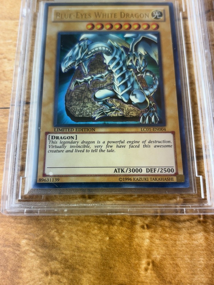Up for sale is a highly coveted 2010 Yu-Gi-Oh! Legendary Collection Blue-Eyes White Dragon card. This Ultra Rare card features the iconic Slifer the Sky Dragon character and has a stunning foil finish. The card is in near mint condition and has been well preserved in a protective sleeve. This Limited Edition card is a must-have for any serious Yu-Gi-Oh! TCG collector. It is a Normal Type card with an Attack/Power of X000 and a Defense/Toughness of X000. The card is in English and has the card number LC01-EN002. Don't miss out on the chance to add this rare and valuable card to your collection.