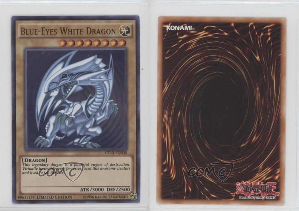2016 Yu-Gi-Oh! Mega-Tins - Limited Edition [Base] #CT13-EN008 Blue-Eyes White Dragon COMC Item: 207455710 - YuGiOh Card - Featuring Blue-Eyes White Dragon Search for more: 2016 Yu-Gi-Oh! Mega-Tins Search for more: 2016 Yu-Gi-Oh! Mega-Tins - Limited Edition [Base] View all of our Listings Auctions Buy It Now About Us Located in the beautiful Pacific Northwest, COMC (Check Out My Cards) is the world's largest consignment service for trading card singles. More than 10,000 people have used our consignment service to list over 50 million trading cards. Find out how we can help you consign your items on eBay by contacting us through eBay messaging. COMC -- "The Safe & Easy Way to Buy & Sell" Raw Condition for Modern Cards Unless otherwise noted, raw modern cards are listed in Near Mint-Mint condition or better. A NM-MT card appears to be Mint at first glance, but upon closer inspection, may exhibit some of the following: minor print defects (e.g. roller marks, print line, dimple), minor scratches, slight edge wear, and slight corner wear. Centering is clearly visible in the images provided and does not factor into our condition assessment. Raw Condition for Vintage Cards Unless otherwise noted, raw vintage cards are listed in Excellent condition or better. An EX card may exhibit some of the following: minor rounding of corners, surface wear, print defects, light scratches, and slight edge wear/chipping. Centering is clearly visible in the images provided and does not factor into our condition assessment. Domestic Shipping Combined shipping for multiple items is available. To receive combined shipping, please ensure all desired items are in your eBay shopping cart before proceeding to checkout. eBay limits orders to 40 items per order. We automatically combine multiple orders placed on the same day. If you place multiple orders on the same day, please contact us to request a refund of applicable shipping costs. Signature confirmation may be required on invoices over $400. All cards are protected and shipped securely. International Shipping COMC offers eBay's International Shipping (EIS) for international orders under $2,500* (see country exceptions below). All duties and import fees are paid at checkout; in the rare event that there are additional import fees upon delivery, these are borne by the buyer. EIS packages route through a shipping hub in Erlanger, KY before shipping to their final destination. Please note that EIS does not allow for combined shipments. The shipping rates are determined by eBay and cannot be adjusted. *Maximum sale price exceptions: Colombia, Kuwait ($2,000); Taiwan ($1,539); Chile, Costa Rica, Guatemala, Honduras, Trinidad and Tobago ($1,000); Antigua and Barbuda, Aruba, Belize, Dominica, Grenada, Philippines, Saint Kitts and Nevis, Saint Lucia, Montserrat, Turks and Caicos Islands ($500); Dominican Republic, El Salvador ($200). Please request a shipping quote through eBay messaging for orders that exceed the maximum sale price supported by eBay's International Shipping. You will be responsible for all duties and import fees for international orders shipped outside the EIS. All cards are protected and shipped securely. Payment COMC does not accept offers on our cards through our eBay storefront. COMC utilizes eBay’s managed payments system. If you are experiencing difficulties making a payment, please contact eBay for assistance. Return Policy Returns are only accepted on the rare occasion the item is not as described. If you are making a return, please initiate the return process through eBay so a mailing label can be provided for you. Prior to listing, our expert team carefully assessed this item to represent it accurately. Please review the description and high-definition images prior to purchasing to ensure this item meets your satisfaction. We welcome you to contact us if you have further questions about this item. Trust and Integrity COMC carefully assesses each item consigned to us to prevent fraudulent items from entering the marketplace. If you believe an item offered on COMC may be fraudulent, please contact us with details so we can investigate the issue. Items we determine are outside our supported items policy may be removed. Last Modified: 5/24/2025 6:27:35 PM PDT