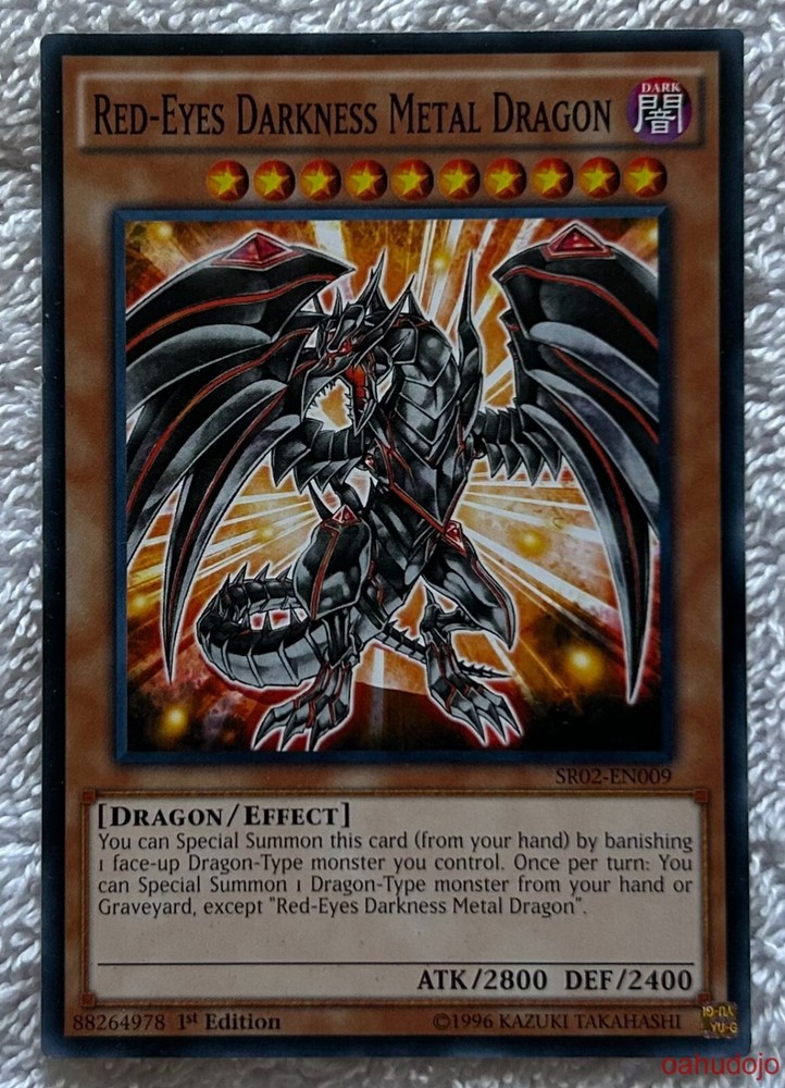 2016 KONAMI DIGITAL ENTERTAINMENT RED-EYES DARKNESS METAL DRAGON It is card #SR02-EN009 Attributes: Card is in NEAR-MINT+ condition Sleeved as soon as pack was opened This is your chance to get this HARD TO FIND YU-GI-OH TRADING CARD!! A MUST FOR THE TRUE YU-GI-OH FAN!!! Please check out my auctions of other YU-GI-OH COLLECTIBLES NOTE : I am not the owner of this item, but on behalf of the consignor, help to facilitate the sale of this item until such time as the sale is completed; (Item is shipped to the buyer). I have made my best effort to test and inspect each item(s) in order to create the best possible description for this item. Every effort has been made to furnish photographs that accurately depict the condition and image of the item(s) at the time of sale. Refunds/returns are accepted ONLY if the item is substantially misrepresented in the auction or damaged during shipping. Every item I sell is Guaranteed 100% Authentic or your money back ! :: payment terms shipping terms :: Will ship as soon as payment is confirmed. Discounts on shipping will be given on multiple auctions. Winning bidder to pay $6.35 for shipping/handling in the U.S. Additional cards are $1.00 EACH