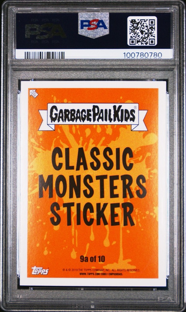 Item Description: Card: Fryin' Ryan Card # : 9a Type: PSA Graded Grade: PSA 10 GEM MINT Release Year: 2019 Series Release: Revenge of Oh, The Horror-ible, Classic Monsters Stickers Population: 4 Condition: Professionally graded as PSA 10, and slab is also Mint condition Photos show the actual card you will receive. Special Notes: Comes with slab sleeve.