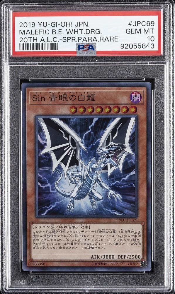 2019 YU-GI-OH! JAPANESE 20TH-20TH ANNIVERSARY LEGEND COLLECTION SUPER PARALLEL RARE #JPC69 MALEFIC BLUE-EYES WHITE DRAGON PSA 10 2019 YU-GI-OH! JAPANESE 20TH-20TH ANNIVERSARY LEGEND COLLECTION SUPER PARALLEL RARE #JPC69 MALEFIC BLUE-EYES WHITE DRAGON PSA 10 Purchase Info Thank you for your interest in this item consigned with PSA! By purchasing or making an offer on this item, you acknowledge and agree to the following terms: All sales are final. Returns not accepted. Payment must be made upon purchase of the item. All items are sold "as is" and without warranty of Collectors Universe, Inc. (d/b/a PSA), and ANY AND ALL IMPLIED WARRANTIES ARE DISCLAIMED AND EXCLUDED. Sales tax may apply depending on shipping address. PSA does not guarantee that another third-party grading company's authentication or certification of an item as genuine is correct or accurate. Neither a difference of opinion between third-party grading companies about authenticity, nor a company's subsequent reversal of its earlier authentication or certification of an item, will be a basis for rescinding a sale. Any dispute with another third-party grading company relating to the authenticity of an item must be resolved directly with that other company. Collectors' maximum liability in the event of loss or damage to an item during shipping will be the lesser of (a) the price paid for the item and (b) the change in fair market value of the item. You release Collectors from all other liability including for any claims of punitive damages, emotional distress, consequential damages, lost profits, or lost interest, except as prohibited by law. Shipping Purchased Items will be shipped directly from PSA Vault. You stay hands-free. PSA Vault When you purchase this item, you can save on sales tax and selling fees by keeping it in the PSA Vault, official Vault of eBay. Items already in PSA Vault and will be sent to PSA Vault will have no shipping charge Storage of any items with the PSA Vault will be subject to the PSA Vault Terms of Service. Consignment PSA has competitive rates on the world's largest collectibles marketplace with the option to list from the PSA Vault or immediately after PSA authentication and grading. Sale Price Under $100 $100 - $499 $500 - $999 $1,000 - $2,499 $2,500 - $4,999 $5,000+ Seller Fee 13% + $3 flat 13% 12% 10% 9% 7% Sellers pay a single fee as reflected above; no additional eBay fees are incurred.