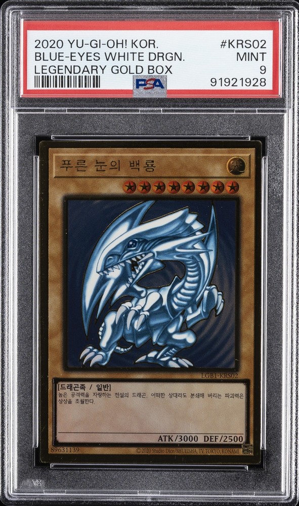 2020 YU-GI-OH! KOREAN LEGENDARY GOLD BOX #KRS02 BLUE-EYES WHITE DRAGON PSA 9 2020 YU-GI-OH! KOREAN LEGENDARY GOLD BOX #KRS02 BLUE-EYES WHITE DRAGON PSA 9 Purchase Info Thank you for your interest in bidding on this item consigned with PSA! By bidding on this item, you acknowledge and agree to the following terms: All sales are final. Returns not accepted. Payment must be made within 7 days of auction close. All items are sold "as is" and without warranty of Collectors Universe, Inc. (d/b/a PSA), and ANY AND ALL IMPLIED WARRANTIES ARE DISCLAIMED AND EXCLUDED. Sales tax may apply depending on shipping address. PSA does not guarantee that another third-party grading company's authentication or certification of an item as genuine is correct or accurate. Neither a difference of opinion between third-party grading companies about authenticity, nor a company's subsequent reversal of its earlier authentication or certification of an item, will be a basis for rescinding a sale. Any dispute with another third-party grading company relating to the authenticity of an item must be resolved directly with that other company. Collectors' maximum liability in the event of loss or damage to an item during shipping will be the lesser of (a) the price paid for the item and (b) the change in fair market value of the item. You release Collectors from all other liability including for any claims of punitive damages, emotional distress, consequential damages, lost profits, or lost interest, except as prohibited by law. Shipping Purchased Items will be shipped directly from PSA Vault. You stay hands-free. PSA Vault When you purchase this item, you can save on sales tax and selling fees by keeping it in the PSA Vault, official Vault of eBay. Items already in PSA Vault and will be sent to PSA Vault will have no shipping charge Storage of any items with the PSA Vault will be subject to the PSA Vault Terms of Service. Consignment PSA has competitive auction rates on the world's largest collectibles marketplace with the option to list from the PSA Vault or immediately after PSA authentication and grading. Sale Price Under $100 $100 - $499 $500 - $999 $1,000 - $2,499 $2,500 - $4,999 $5,000+ Seller Fee 13% + $3 flat 13% 12% 10% 9% 7% Sellers pay a single fee as reflected above; no additional eBay fees are incurred.