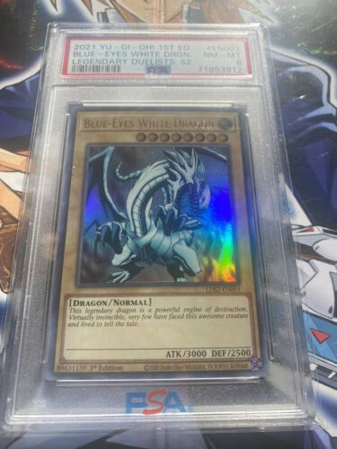 2021 YU-GI-OH! LEGENDARY DUELISTS: SEASON 2 1ST EDITION-BLUE #EN001 BLUE-EYES WHITE DRAGON PSA 8 2021 YU-GI-OH! LEGENDARY DUELISTS: SEASON 2 1ST EDITION-BLUE #EN001 BLUE-EYES WHITE DRAGON PSA 8 Purchase Info Thank you for your interest in bidding on this item consigned with PSA! By bidding on this item, you acknowledge and agree to the following terms: All sales are final. Returns not accepted. Payment must be made within 7 days of auction close. All items are sold "as is" and without warranty of Collectors Universe, Inc. (d/b/a PSA), and ANY AND ALL IMPLIED WARRANTIES ARE DISCLAIMED AND EXCLUDED. Sales tax may apply depending on shipping address. PSA does not guarantee that another third-party grading company's authentication or certification of an item as genuine is correct or accurate. Neither a difference of opinion between third-party grading companies about authenticity, nor a company's subsequent reversal of its earlier authentication or certification of an item, will be a basis for rescinding a sale. Any dispute with another third-party grading company relating to the authenticity of an item must be resolved directly with that other company. Collectors' maximum liability in the event of loss or damage to an item during shipping will be the lesser of (a) the price paid for the item and (b) the change in fair market value of the item. You release Collectors from all other liability including for any claims of punitive damages, emotional distress, consequential damages, lost profits, or lost interest, except as prohibited by law. Shipping Purchased Items will be shipped directly from PSA Vault. You stay hands-free. PSA Vault When you purchase this item, you can save on sales tax and selling fees by keeping it in the PSA Vault, official Vault of eBay. Items already in PSA Vault and will be sent to PSA Vault will have no shipping charge Storage of any items with the PSA Vault will be subject to the PSA Vault Terms of Service. Consignment PSA has competitive auction rates on the world's largest collectibles marketplace with the option to list from the PSA Vault or immediately after PSA authentication and grading. Sale Price Under $100 $100 - $499 $500 - $999 $1,000 - $2,499 $2,500 - $4,999 $5,000+ Seller Fee 13% + $3 flat 13% 12% 10% 9% 7% Sellers pay a single fee as reflected above; no additional eBay fees are incurred.
