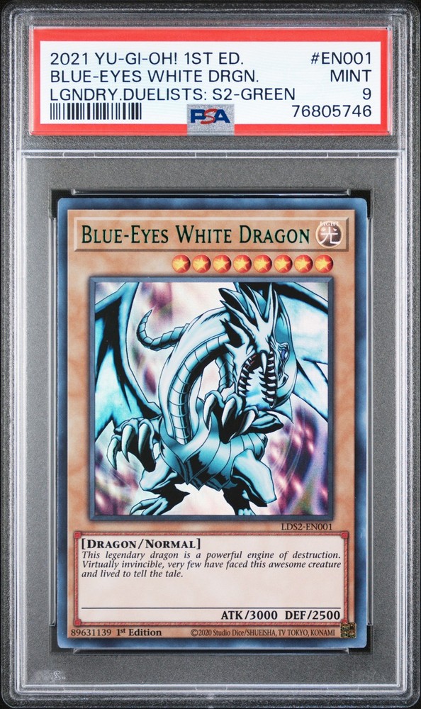 2021 YU-GI-OH! LEGENDARY DUELISTS: SEASON 2 1ST EDITION-GREEN #EN001 BLUE-EYES WHITE DRAGON PSA 9 2021 YU-GI-OH! LEGENDARY DUELISTS: SEASON 2 1ST EDITION-GREEN #EN001 BLUE-EYES WHITE DRAGON PSA 9 Purchase Info Thank you for your interest in bidding on this item consigned with PSA! By bidding on this item, you acknowledge and agree to the following terms: All sales are final. Returns not accepted. Payment must be made within 7 days of auction close. All items are sold "as is" and without warranty of Collectors Universe, Inc. (d/b/a PSA), and ANY AND ALL IMPLIED WARRANTIES ARE DISCLAIMED AND EXCLUDED. Sales tax may apply depending on shipping address. PSA does not guarantee that another third-party grading company's authentication or certification of an item as genuine is correct or accurate. Neither a difference of opinion between third-party grading companies about authenticity, nor a company's subsequent reversal of its earlier authentication or certification of an item, will be a basis for rescinding a sale. Any dispute with another third-party grading company relating to the authenticity of an item must be resolved directly with that other company. Collectors' maximum liability in the event of loss or damage to an item during shipping will be the lesser of (a) the price paid for the item and (b) the change in fair market value of the item. You release Collectors from all other liability including for any claims of punitive damages, emotional distress, consequential damages, lost profits, or lost interest, except as prohibited by law. Shipping Purchased Items will be shipped directly from PSA Vault. You stay hands-free. PSA Vault When you purchase this item, you can save on sales tax and selling fees by keeping it in the PSA Vault, official Vault of eBay. Items already in PSA Vault and will be sent to PSA Vault will have no shipping charge Storage of any items with the PSA Vault will be subject to the PSA Vault Terms of Service. Consignment PSA has competitive auction rates on the world's largest collectibles marketplace with the option to list from the PSA Vault or immediately after PSA authentication and grading. Sale Price Under $100 $100 - $499 $500 - $999 $1,000 - $2,499 $2,500 - $4,999 $5,000+ Seller Fee 13% + $3 flat 13% 12% 10% 9% 7% Sellers pay a single fee as reflected above; no additional eBay fees are incurred.