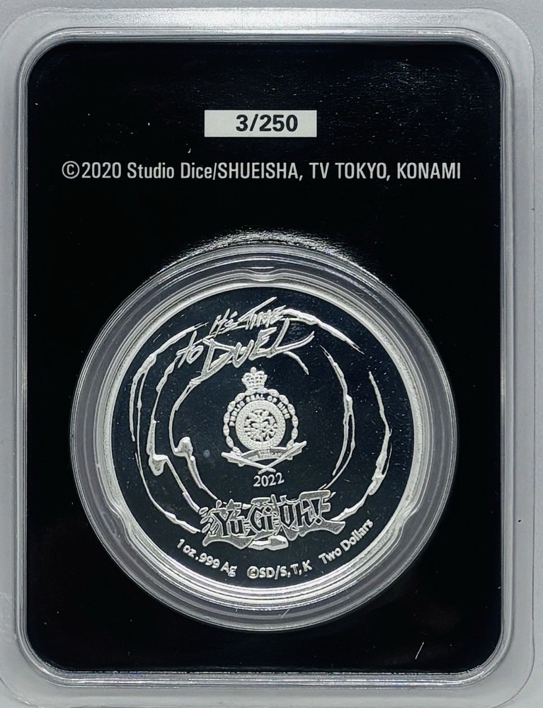The 2022 Niue 1oz Silver Yu-Gi-Oh! - Red Eyes Black Dragon coin is a limited edition collectible featuring the iconic character from the popular anime series. This highly valued coin is made of silver and is numbered as "Number 3 Out Of 250," adding to its exclusivity and desirability among collectors. Produced in Niue, this coin showcases the craftsmanship and attention to detail that are synonymous with world-class coin production. A must-have for any serious collector or fan of Yu-Gi-Oh!