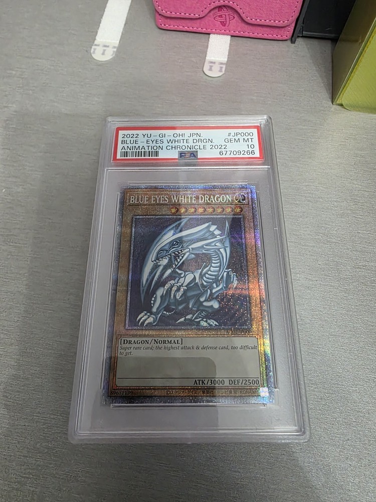 2022 YU-GI-OH! GHOSTS FROM THE PAST 2 - GHOST RARE - 1ST ED. #GFP2-EN175 BLUE-EYES WHITE DRAGON CGC 10 GEM MINT 2022 YU-GI-OH! GHOSTS FROM THE PAST 2 - GHOST RARE - 1ST ED. #GFP2-EN175 BLUE-EYES WHITE DRAGON CGC 10 GEM MINT Purchase Info Thank you for your interest in this item consigned with PSA! By purchasing or making an offer on this item, you acknowledge and agree to the following terms: All sales are final. Returns not accepted. Payment must be made upon purchase of the item. All items are sold "as is" and without warranty of Collectors Universe, Inc. (d/b/a PSA), and ANY AND ALL IMPLIED WARRANTIES ARE DISCLAIMED AND EXCLUDED. Sales tax may apply depending on shipping address. PSA does not guarantee that another third-party grading company's authentication or certification of an item as genuine is correct or accurate. Neither a difference of opinion between third-party grading companies about authenticity, nor a company's subsequent reversal of its earlier authentication or certification of an item, will be a basis for rescinding a sale. Any dispute with another third-party grading company relating to the authenticity of an item must be resolved directly with that other company. Collectors' maximum liability in the event of loss or damage to an item during shipping will be the lesser of (a) the price paid for the item and (b) the change in fair market value of the item. You release Collectors from all other liability including for any claims of punitive damages, emotional distress, consequential damages, lost profits, or lost interest, except as prohibited by law. Shipping Purchased Items will be shipped directly from PSA Vault. You stay hands-free. PSA Vault When you purchase this item, you can save on sales tax and selling fees by keeping it in the PSA Vault, official Vault of eBay. Items already in PSA Vault and will be sent to PSA Vault will have no shipping charge Storage of any items with the PSA Vault will be subject to the PSA Vault Terms of Service. Consignment PSA has competitive rates on the world's largest collectibles marketplace with the option to list from the PSA Vault or immediately after PSA authentication and grading. Sale Price Under $100 $100 - $499 $500 - $999 $1,000 - $2,499 $2,500 - $4,999 $5,000+ Seller Fee 16% 14% 13% 10% 9% 7% Sellers pay a single fee as reflected above; no additional eBay fees are incurred. There is a $5 minimum fee on sold items.