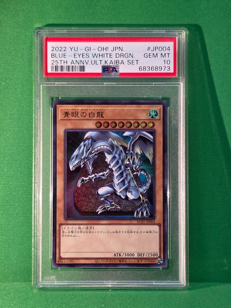 The 2022 YU-GI-OH! JPN BLUE-EYES WHITE DRAGON 25TH ULTIMATE KAIBA SET KC01-JP004 PSA is a highly sought after collectible card from the Yu-Gi-Oh! TCG. This card, graded by Professional Sports Authenticator (PSA), features the iconic Blue-Eyes White Dragon from the Yugi set. As a 25th anniversary ultimate edition, this card holds significant value for collectors and players alike. With its pristine condition and rarity, this card would make a prized addition to any Yu-Gi-Oh! card collection.
