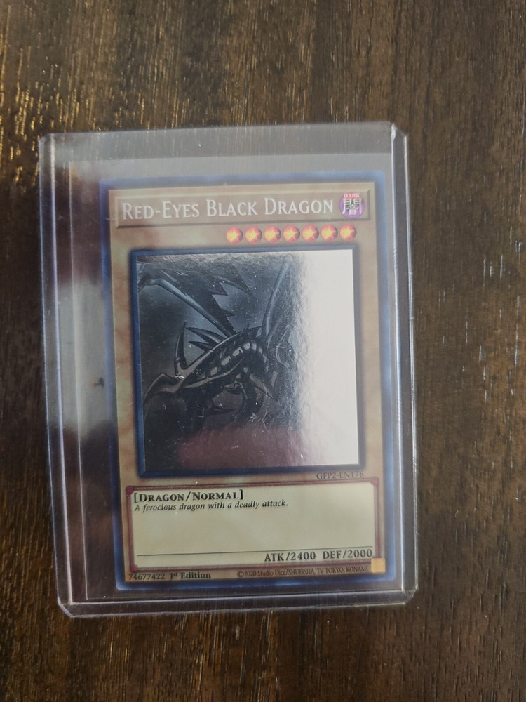 For sale is a Yu-Gi-Oh! TCG card, the Red Eyes Black Dragon from the Ghost from the past 2 set, manufactured by Konami. This card is a 1st Edition and Its rarity is Ghost Rare, making it a valuable addition to any collection. The card was manufactured in the year 2022 and has the attribute of Dark. . It is perfect for fans of the Yu-Gi-Oh! TCG and collectors alike. Don't miss out on the chance to add this amazing card to your collection.