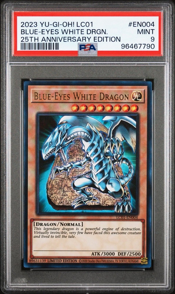 This limited edition Blue-Eyes White Dragon card from the Legendary Collection: 25th Anniversary Edition is a must-have for any Yu-Gi-Oh! TCG collector. With a defense/toughness of 2500 and an attack/power of 3000, this ultra rare card is sure to make a powerful addition to your deck. The card is in English and has the card number LC01-EN004. It features the Light attribute and is a Normal type card. The Blue-Eyes White Dragon is a creature/monster type card and has a rarity of Ultra Rare. This card is manufactured by Konami and is a great addition to any collection.