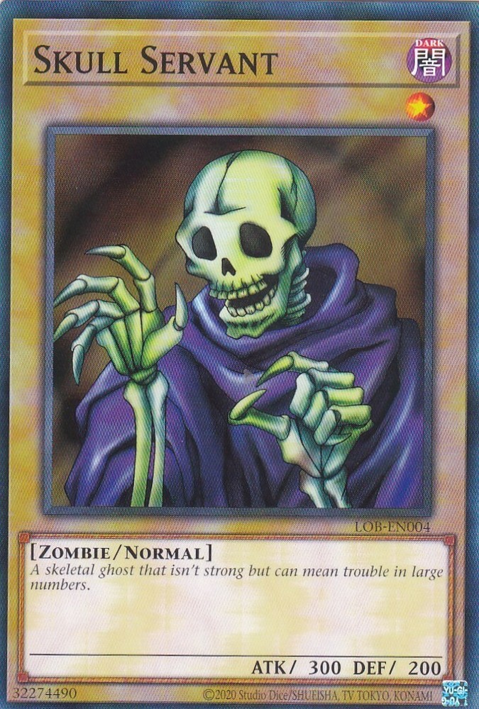 This item is a Yu-Gi-Oh! game card featuring Skull Servant from the Legend of Blue-Eyes White Dragon 25th Anniversary set. My shipping cost is a flat $2 for domestic buyers, and $4 for international buyers. Combined shipping is available, so if you are purchasing more than one item, please make sure to request an invoice on the shopping cart screen so I can send you an updated total.