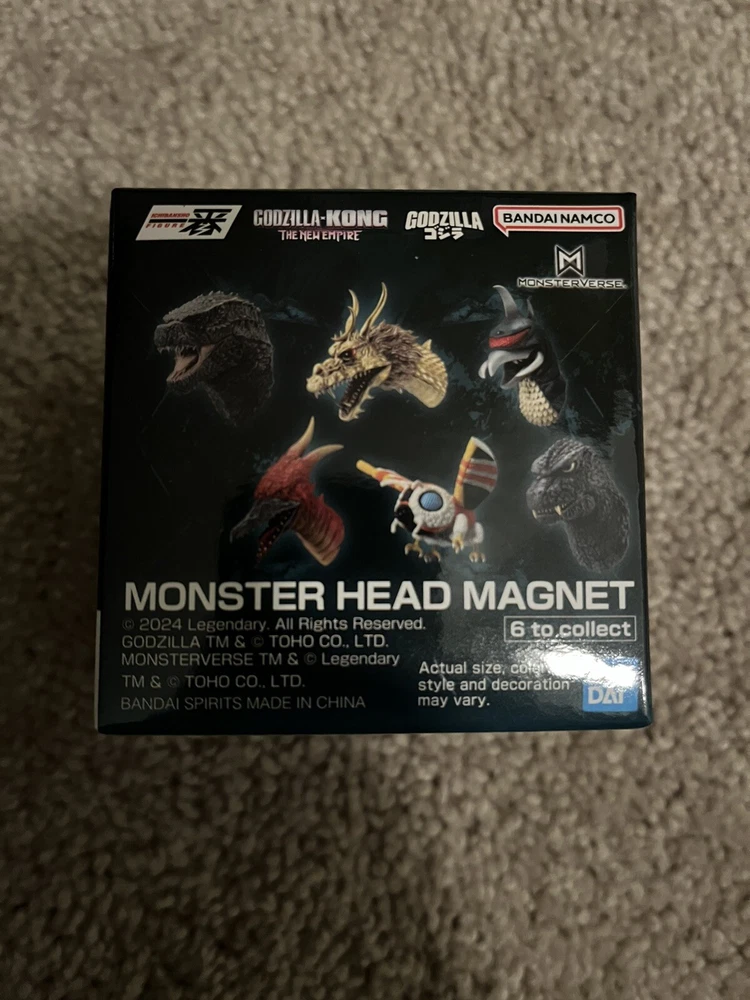 This listing is for a Godzilla monster head magnet. The magnet is from a set of six. This particular magnet should be Godzilla’s head from the movie, Godzilla X Kong, The New Empire. The magnet is unopened. I know that it is the Godzilla evolved version based on the other five magnets that I opened. I am selling this one solely because I am not a fan of the MonsterVerse movies.