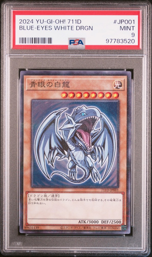 2024 YU-GI-OH! JAPANESE 711D-YU-GI-OH! CARD GAME X 7-ELEVEN COLLABORATION CAMPAIGN #JP001 BLUE-EYES WHITE DRAGON PSA 9 2024 YU-GI-OH! JAPANESE 711D-YU-GI-OH! CARD GAME X 7-ELEVEN COLLABORATION CAMPAIGN #JP001 BLUE-EYES WHITE DRAGON PSA 9 Purchase Info Thank you for your interest in this item consigned with PSA! By purchasing or making an offer on this item, you acknowledge and agree to the following terms: All sales are final. Returns not accepted. Payment must be made upon purchase of the item. All items are sold "as is" and without warranty of Collectors Universe, Inc. (d/b/a PSA), and ANY AND ALL IMPLIED WARRANTIES ARE DISCLAIMED AND EXCLUDED. Sales tax may apply depending on shipping address. PSA does not guarantee that another third-party grading company's authentication or certification of an item as genuine is correct or accurate. Neither a difference of opinion between third-party grading companies about authenticity, nor a company's subsequent reversal of its earlier authentication or certification of an item, will be a basis for rescinding a sale. Any dispute with another third-party grading company relating to the authenticity of an item must be resolved directly with that other company. Collectors' maximum liability in the event of loss or damage to an item during shipping will be the lesser of (a) the price paid for the item and (b) the change in fair market value of the item. You release Collectors from all other liability including for any claims of punitive damages, emotional distress, consequential damages, lost profits, or lost interest, except as prohibited by law. Shipping Purchased Items will be shipped directly from PSA Vault. You stay hands-free. PSA Vault When you purchase this item, you can save on sales tax and selling fees by keeping it in the PSA Vault, official Vault of eBay. Items already in PSA Vault and will be sent to PSA Vault will have no shipping charge Storage of any items with the PSA Vault will be subject to the PSA Vault Terms of Service. Consignment PSA has competitive rates on the world's largest collectibles marketplace with the option to list from the PSA Vault or immediately after PSA authentication and grading. Sale Price Under $100 $100 - $499 $500 - $999 $1,000 - $2,499 $2,500 - $4,999 $5,000+ Seller Fee 16% 14% 13% 10% 9% 7% Sellers pay a single fee as reflected above; no additional eBay fees are incurred. There is a $5 minimum fee on sold items.