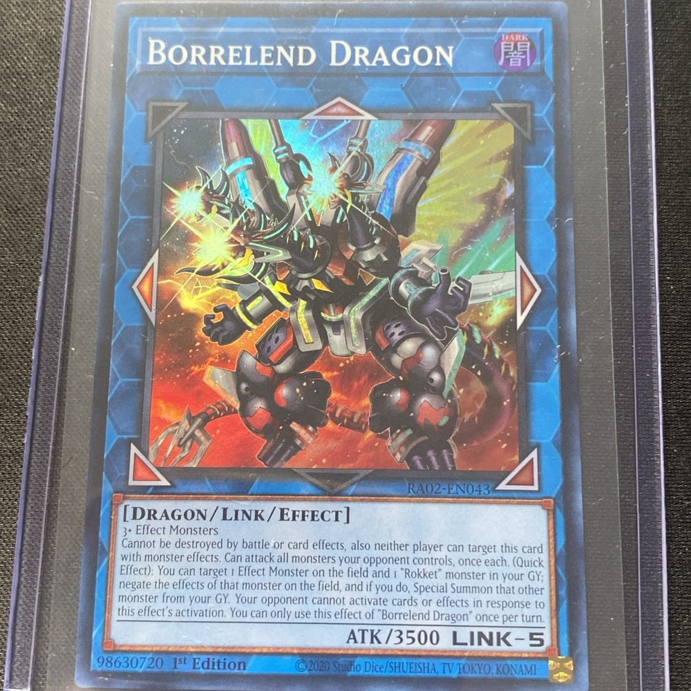 3+ Effect MonstersCannot be destroyed by battle or card effects, also neither player can target this card with monster effects. This card can attack all monsters your opponent controls, once each. (Quick Effect): You can target 1 Effect Monster on the field and 1 "Rokket" monster in your GY; negate the effects of that monster on the field, and if you do, Special Summon that other monster from your GY. Your opponent cannot activate cards or effects in response to this effect's activation. You can only use this effect of "Borrelend Dragon" once per turn.