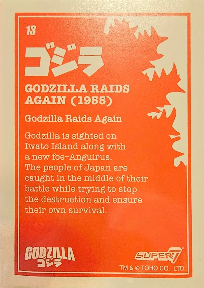2024 Super7 Godzilla Showa Series 1 - Toho Foil Trading Cards condition near-mint to mint (not a grader) imperfections from box straight from pack to penny sleeve will send either in envelope or ground advantage depending on quantity ordered please look at pictures...they IMO are in the range of PSA 8/9...but i'm not a professional grader....so if you are expecting perfect these are not 'PERFECT"...thanks for looking... i do not except returns on raw ungraded cards...please be respectful of that. below what is available: #1 2X #2 5X #3 #4 3X #5 #7 2X #8 #9 2X #10 2X #11 3X #12 2X #13 4X #14 #15 2X #16 2X #17 3X #18 2X #20 2X #21 2X #22 2X #23 3X #24 #25 2X #26 #27 2X #28 2X #29 2X #30 #31 3X #32 3X #33 3X #34 2X #35 2X #36 4X #38 2X #39 2X #40 2X #41 2X #42 2X #43 2X #44 2X #45 2X #46 #48 2X #49 2X #50 2X #51 2X #52 3X #53 2X #54 3X #56 #57 4X #58 5X #59 3X #60 3X #61 3X #62 2X #63 3X #64 3X #65 3X #66 2X #67 3X #68 4X #69 2X #70 #71 2X #72 2X #73 #74 3X #75 2X #76 2X #77 #78 2X #79 3X #80 2X #81 3X #82 2X #83 3X #84 3X C1 3X C2 4X C4 2X C5 C7 2X C8 C9 3X C10 5X C11 4X C12 S1 5X S2 4X S3 5X S4 5X S5 4X S6 4X S7 5X S8 6X S9 2X S10 4X S11 3X S12 3X