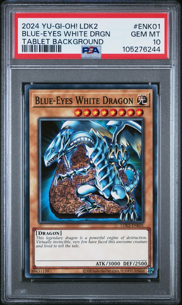 2024 YU-GI-OH! LEGENDARY DECKS II TABLET BACKGROUND #ENK01 BLUE-EYES WHITE DRAGON PSA 10 2024 YU-GI-OH! LEGENDARY DECKS II TABLET BACKGROUND #ENK01 BLUE-EYES WHITE DRAGON PSA 10 Purchase Info Thank you for your interest in this item consigned with PSA! By purchasing or making an offer on this item, you acknowledge and agree to the following terms: All sales are final. Returns not accepted. Payment must be made upon purchase of the item. All items are sold "as is" and without warranty of Collectors Universe, Inc. (d/b/a PSA), and ANY AND ALL IMPLIED WARRANTIES ARE DISCLAIMED AND EXCLUDED. Sales tax may apply depending on shipping address. PSA does not guarantee that another third-party grading company's authentication or certification of an item as genuine is correct or accurate. Neither a difference of opinion between third-party grading companies about authenticity, nor a company's subsequent reversal of its earlier authentication or certification of an item, will be a basis for rescinding a sale. Any dispute with another third-party grading company relating to the authenticity of an item must be resolved directly with that other company. Collectors' maximum liability in the event of loss or damage to an item during shipping will be the lesser of (a) the price paid for the item and (b) the change in fair market value of the item. You release Collectors from all other liability including for any claims of punitive damages, emotional distress, consequential damages, lost profits, or lost interest, except as prohibited by law. Shipping Purchased Items will be shipped directly from PSA Vault. You stay hands-free. PSA Vault When you purchase this item, you can save on sales tax and selling fees by keeping it in the PSA Vault, official Vault of eBay. Items already in PSA Vault and will be sent to PSA Vault will have no shipping charge Storage of any items with the PSA Vault will be subject to the PSA Vault Terms of Service. Consignment PSA has competitive rates on the world's largest collectibles marketplace with the option to list from the PSA Vault or immediately after PSA authentication and grading. Sale Price Under $100 $100 - $499 $500 - $999 $1,000 - $2,499 $2,500 - $4,999 $5,000+ Seller Fee 16% 14% 13% 10% 9% 7% Sellers pay a single fee as reflected above; no additional eBay fees are incurred. There is a $5 minimum fee on sold items.