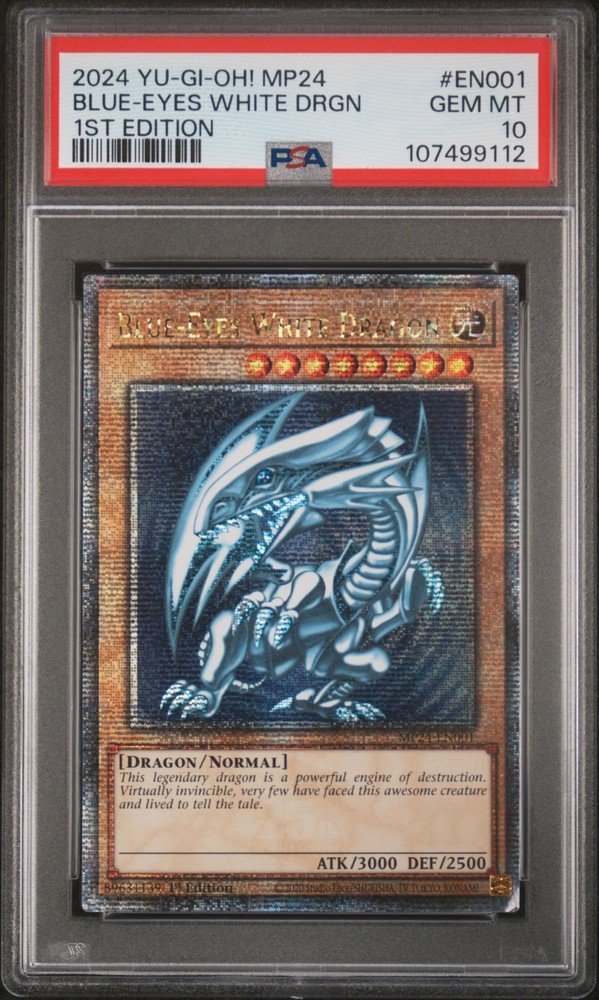 2024 YU-GI-OH! MP24-25TH ANNIVERSARY TIN: DUELING MIRRORS 1ST EDITION #EN001 BLUE-EYES WHITE DRAGON PSA 10 2024 YU-GI-OH! MP24-25TH ANNIVERSARY TIN: DUELING MIRRORS 1ST EDITION #EN001 BLUE-EYES WHITE DRAGON PSA 10 Purchase Info Thank you for your interest in this item consigned with PSA! By purchasing or making an offer on this item, you acknowledge and agree to the following terms: All sales are final. Returns not accepted. Payment must be made upon purchase of the item. All items are sold "as is" and without warranty of Collectors Universe, Inc. (d/b/a PSA), and ANY AND ALL IMPLIED WARRANTIES ARE DISCLAIMED AND EXCLUDED. Sales tax may apply depending on shipping address. PSA does not guarantee that another third-party grading company's authentication or certification of an item as genuine is correct or accurate. Neither a difference of opinion between third-party grading companies about authenticity, nor a company's subsequent reversal of its earlier authentication or certification of an item, will be a basis for rescinding a sale. Any dispute with another third-party grading company relating to the authenticity of an item must be resolved directly with that other company. Collectors' maximum liability in the event of loss or damage to an item during shipping will be the lesser of (a) the price paid for the item and (b) the change in fair market value of the item. You release Collectors from all other liability including for any claims of punitive damages, emotional distress, consequential damages, lost profits, or lost interest, except as prohibited by law. Shipping Purchased Items will be shipped directly from PSA Vault. You stay hands-free. PSA Vault When you purchase this item, you can save on sales tax and selling fees by keeping it in the PSA Vault, official Vault of eBay. Items already in PSA Vault and will be sent to PSA Vault will have no shipping charge Storage of any items with the PSA Vault will be subject to the PSA Vault Terms of Service. Consignment PSA has competitive rates on the world's largest collectibles marketplace with the option to list from the PSA Vault or immediately after PSA authentication and grading. Sale Price Under $100 $100 - $499 $500 - $999 $1,000 - $2,499 $2,500 - $4,999 $5,000+ Seller Fee 16% 14% 13% 10% 9% 7% Sellers pay a single fee as reflected above; no additional eBay fees are incurred. There is a $5 minimum fee on sold items.