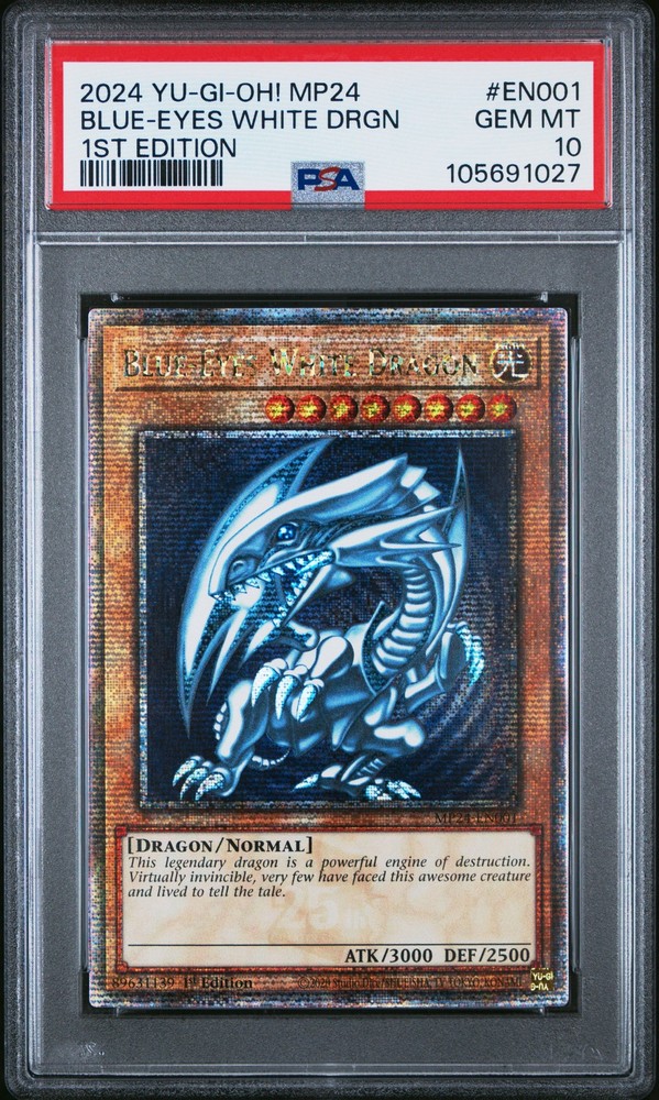 2024 YU-GI-OH! MP24-25TH ANNIVERSARY TIN: DUELING MIRRORS 1ST EDITION #EN001 BLUE-EYES WHITE DRAGON PSA 10 2024 YU-GI-OH! MP24-25TH ANNIVERSARY TIN: DUELING MIRRORS 1ST EDITION #EN001 BLUE-EYES WHITE DRAGON PSA 10 Purchase Info Thank you for your interest in this item consigned with PSA! By purchasing or making an offer on this item, you acknowledge and agree to the following terms: All sales are final. Returns not accepted. Payment must be made upon purchase of the item. All items are sold "as is" and without warranty of Collectors Universe, Inc. (d/b/a PSA), and ANY AND ALL IMPLIED WARRANTIES ARE DISCLAIMED AND EXCLUDED. Sales tax may apply depending on shipping address. PSA does not guarantee that another third-party grading company's authentication or certification of an item as genuine is correct or accurate. Neither a difference of opinion between third-party grading companies about authenticity, nor a company's subsequent reversal of its earlier authentication or certification of an item, will be a basis for rescinding a sale. Any dispute with another third-party grading company relating to the authenticity of an item must be resolved directly with that other company. Collectors' maximum liability in the event of loss or damage to an item during shipping will be the lesser of (a) the price paid for the item and (b) the change in fair market value of the item. You release Collectors from all other liability including for any claims of punitive damages, emotional distress, consequential damages, lost profits, or lost interest, except as prohibited by law. Shipping Purchased Items will be shipped directly from PSA Vault. You stay hands-free. PSA Vault When you purchase this item, you can save on sales tax and selling fees by keeping it in the PSA Vault, official Vault of eBay. Items already in PSA Vault and will be sent to PSA Vault will have no shipping charge Storage of any items with the PSA Vault will be subject to the PSA Vault Terms of Service. Consignment PSA has competitive rates on the world's largest collectibles marketplace with the option to list from the PSA Vault or immediately after PSA authentication and grading. Sale Price Under $100 $100 - $499 $500 - $999 $1,000 - $2,499 $2,500 - $4,999 $5,000+ Seller Fee 16% 14% 13% 10% 9% 7% Sellers pay a single fee as reflected above; no additional eBay fees are incurred. There is a $5 minimum fee on sold items.