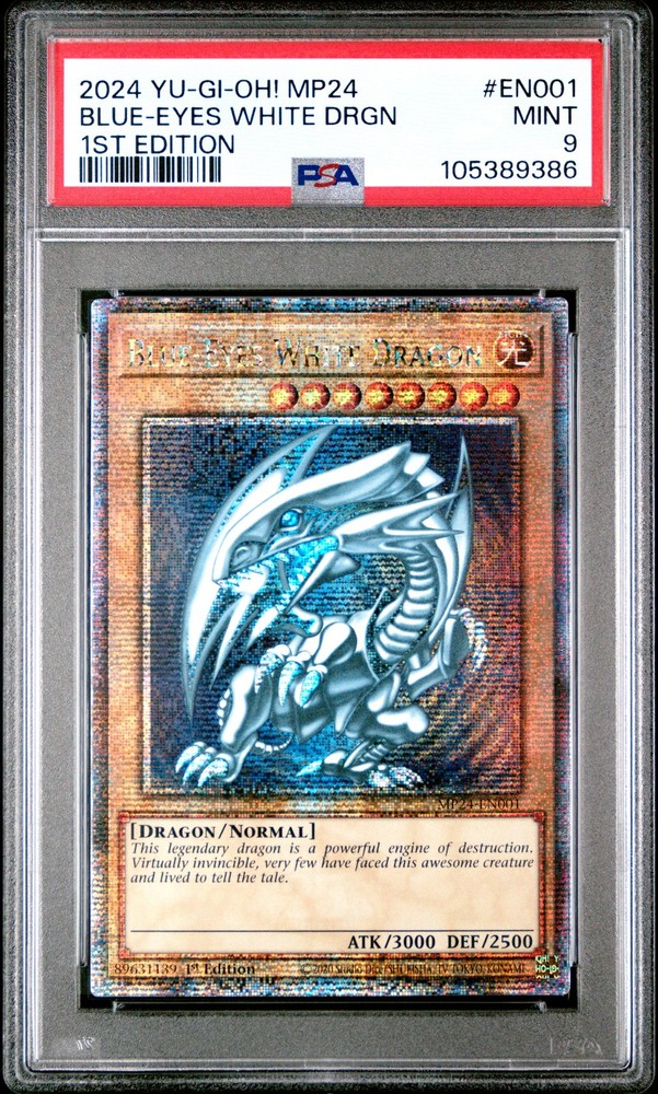2024 YU-GI-OH! MP24-25TH ANNIVERSARY TIN: DUELING MIRRORS 1ST EDITION #EN001 BLUE-EYES WHITE DRAGON PSA 9 2024 YU-GI-OH! MP24-25TH ANNIVERSARY TIN: DUELING MIRRORS 1ST EDITION #EN001 BLUE-EYES WHITE DRAGON PSA 9 Purchase Info Thank you for your interest in this item consigned with PSA! By purchasing or making an offer on this item, you acknowledge and agree to the following terms: All sales are final. Returns not accepted. Payment must be made upon purchase of the item. All items are sold "as is" and without warranty of Collectors Universe, Inc. (d/b/a PSA), and ANY AND ALL IMPLIED WARRANTIES ARE DISCLAIMED AND EXCLUDED. Sales tax may apply depending on shipping address. PSA does not guarantee that another third-party grading company's authentication or certification of an item as genuine is correct or accurate. Neither a difference of opinion between third-party grading companies about authenticity, nor a company's subsequent reversal of its earlier authentication or certification of an item, will be a basis for rescinding a sale. Any dispute with another third-party grading company relating to the authenticity of an item must be resolved directly with that other company. Collectors' maximum liability in the event of loss or damage to an item during shipping will be the lesser of (a) the price paid for the item and (b) the change in fair market value of the item. You release Collectors from all other liability including for any claims of punitive damages, emotional distress, consequential damages, lost profits, or lost interest, except as prohibited by law. Shipping Purchased Items will be shipped directly from PSA Vault. You stay hands-free. PSA Vault When you purchase this item, you can save on sales tax and selling fees by keeping it in the PSA Vault, official Vault of eBay. Items already in PSA Vault and will be sent to PSA Vault will have no shipping charge Storage of any items with the PSA Vault will be subject to the PSA Vault Terms of Service. Consignment PSA has competitive rates on the world's largest collectibles marketplace with the option to list from the PSA Vault or immediately after PSA authentication and grading. Sale Price Under $100 $100 - $499 $500 - $999 $1,000 - $2,499 $2,500 - $4,999 $5,000+ Seller Fee 16% 14% 13% 10% 9% 7% Sellers pay a single fee as reflected above; no additional eBay fees are incurred. There is a $5 minimum fee on sold items.