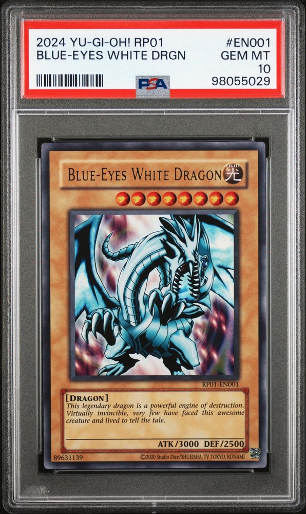2024 YU-GI-OH! RP01-RETRO PACK #EN001 BLUE-EYES WHITE DRAGON PSA 10 2024 YU-GI-OH! RP01-RETRO PACK #EN001 BLUE-EYES WHITE DRAGON PSA 10 Purchase Info Thank you for your interest in this item consigned with PSA! By purchasing or making an offer on this item, you acknowledge and agree to the following terms: All sales are final. Returns not accepted. Payment must be made upon purchase of the item. All items are sold "as is" and without warranty of Collectors Universe, Inc. (d/b/a PSA), and ANY AND ALL IMPLIED WARRANTIES ARE DISCLAIMED AND EXCLUDED. Sales tax may apply depending on shipping address. PSA does not guarantee that another third-party grading company's authentication or certification of an item as genuine is correct or accurate. Neither a difference of opinion between third-party grading companies about authenticity, nor a company's subsequent reversal of its earlier authentication or certification of an item, will be a basis for rescinding a sale. Any dispute with another third-party grading company relating to the authenticity of an item must be resolved directly with that other company. Collectors' maximum liability in the event of loss or damage to an item during shipping will be the lesser of (a) the price paid for the item and (b) the change in fair market value of the item. You release Collectors from all other liability including for any claims of punitive damages, emotional distress, consequential damages, lost profits, or lost interest, except as prohibited by law. Shipping Purchased Items will be shipped directly from PSA Vault. You stay hands-free. PSA Vault When you purchase this item, you can save on sales tax and selling fees by keeping it in the PSA Vault, official Vault of eBay. Items already in PSA Vault and will be sent to PSA Vault will have no shipping charge Storage of any items with the PSA Vault will be subject to the PSA Vault Terms of Service. Consignment PSA has competitive rates on the world's largest collectibles marketplace with the option to list from the PSA Vault or immediately after PSA authentication and grading. Sale Price Under $100 $100 - $499 $500 - $999 $1,000 - $2,499 $2,500 - $4,999 $5,000+ Seller Fee 16% 14% 13% 10% 9% 7% Sellers pay a single fee as reflected above; no additional eBay fees are incurred. There is a $5 minimum fee on sold items.