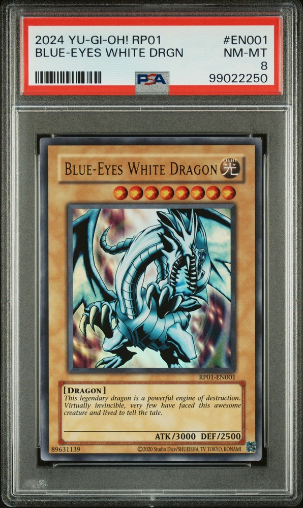 2024 YU-GI-OH! RP01-RETRO PACK #EN001 BLUE-EYES WHITE DRAGON PSA 8 2024 YU-GI-OH! RP01-RETRO PACK #EN001 BLUE-EYES WHITE DRAGON PSA 8 Purchase Info Thank you for your interest in this item consigned with PSA! By purchasing or making an offer on this item, you acknowledge and agree to the following terms: All sales are final. Returns not accepted. Payment must be made upon purchase of the item. All items are sold "as is" and without warranty of Collectors Universe, Inc. (d/b/a PSA), and ANY AND ALL IMPLIED WARRANTIES ARE DISCLAIMED AND EXCLUDED. Sales tax may apply depending on shipping address. PSA does not guarantee that another third-party grading company's authentication or certification of an item as genuine is correct or accurate. Neither a difference of opinion between third-party grading companies about authenticity, nor a company's subsequent reversal of its earlier authentication or certification of an item, will be a basis for rescinding a sale. Any dispute with another third-party grading company relating to the authenticity of an item must be resolved directly with that other company. Collectors' maximum liability in the event of loss or damage to an item during shipping will be the lesser of (a) the price paid for the item and (b) the change in fair market value of the item. You release Collectors from all other liability including for any claims of punitive damages, emotional distress, consequential damages, lost profits, or lost interest, except as prohibited by law. Shipping Purchased Items will be shipped directly from PSA Vault. You stay hands-free. PSA Vault When you purchase this item, you can save on sales tax and selling fees by keeping it in the PSA Vault, official Vault of eBay. Items already in PSA Vault and will be sent to PSA Vault will have no shipping charge Storage of any items with the PSA Vault will be subject to the PSA Vault Terms of Service. Consignment PSA has competitive rates on the world's largest collectibles marketplace with the option to list from the PSA Vault or immediately after PSA authentication and grading. Sale Price Under $100 $100 - $499 $500 - $999 $1,000 - $2,499 $2,500 - $4,999 $5,000+ Seller Fee 16% 14% 13% 10% 9% 7% Sellers pay a single fee as reflected above; no additional eBay fees are incurred. There is a $5 minimum fee on sold items.