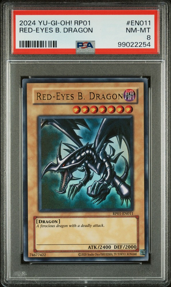2024 YU-GI-OH! RP01-RETRO PACK #EN011 RED-EYES B. DRAGON PSA 8 2024 YU-GI-OH! RP01-RETRO PACK #EN011 RED-EYES B. DRAGON PSA 8 Purchase Info Thank you for your interest in this item consigned with PSA! By purchasing or making an offer on this item, you acknowledge and agree to the following terms: All sales are final. Returns not accepted. Payment must be made upon purchase of the item. All items are sold "as is" and without warranty of Collectors Universe, Inc. (d/b/a PSA), and ANY AND ALL IMPLIED WARRANTIES ARE DISCLAIMED AND EXCLUDED. Sales tax may apply depending on shipping address. PSA does not guarantee that another third-party grading company's authentication or certification of an item as genuine is correct or accurate. Neither a difference of opinion between third-party grading companies about authenticity, nor a company's subsequent reversal of its earlier authentication or certification of an item, will be a basis for rescinding a sale. Any dispute with another third-party grading company relating to the authenticity of an item must be resolved directly with that other company. Collectors' maximum liability in the event of loss or damage to an item during shipping will be the lesser of (a) the price paid for the item and (b) the change in fair market value of the item. You release Collectors from all other liability including for any claims of punitive damages, emotional distress, consequential damages, lost profits, or lost interest, except as prohibited by law. Shipping Purchased Items will be shipped directly from PSA Vault. You stay hands-free. PSA Vault When you purchase this item, you can save on sales tax and selling fees by keeping it in the PSA Vault, official Vault of eBay. Items already in PSA Vault and will be sent to PSA Vault will have no shipping charge Storage of any items with the PSA Vault will be subject to the PSA Vault Terms of Service. Consignment PSA has competitive rates on the world's largest collectibles marketplace with the option to list from the PSA Vault or immediately after PSA authentication and grading. Sale Price Under $100 $100 - $499 $500 - $999 $1,000 - $2,499 $2,500 - $4,999 $5,000+ Seller Fee 16% 14% 13% 10% 9% 7% Sellers pay a single fee as reflected above; no additional eBay fees are incurred. There is a $5 minimum fee on sold items.