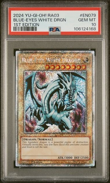 This Platinum Secret Rare Blue-Eyes White Dragon is absolutely stunning! The artwork pops with incredible detail, and the PSA 10 grading guarantees premium quality. Whether you're a die-hard collector or a competitive duelist, this card is a powerhouse addition to any deck or display. The Quarter Century Bonanza rarity makes it a true treasure—totally worth owning for any Yu-Gi-Oh! fan. The vibrant foiling and flawless condition make it a centerpiece that commands attention. Unbeatable for rarity, aesthetics, and nostalgia!