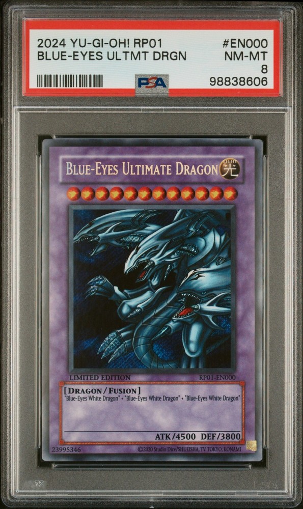 Elevate your Yu-Gi-Oh! TCG collection with the awe-inspiring Blue-Eyes Ultimate Dragon from the Retro Pack 01 series. As a Secret Rare card with the prestige of a limited edition, this Fusion/Effect Monster card is a must-have for duelists and collectors alike. Its stunning holo finish captures the essence of the legendary dragon, making it a standout piece in any collection. Crafted by Konami, the Blue-Eyes Ultimate Dragon card (RP01-EN000) boasts an English language print and is of the Ultimate stage, ready to take on any challenge in your next battle. With its vivid blue color and impressive design, this card is a testament to the enduring popularity of the Yu-Gi-Oh! franchise.