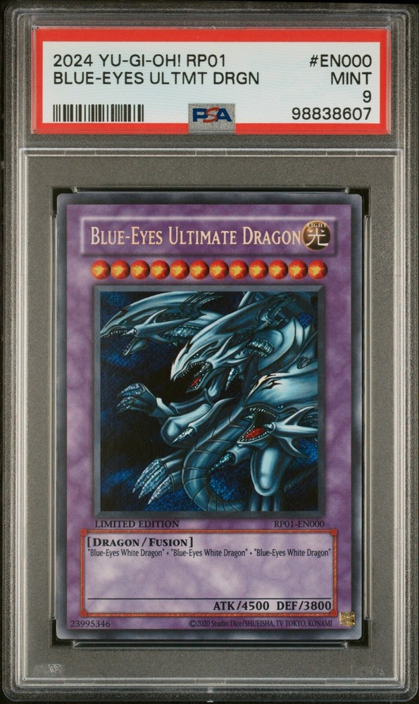 Elevate your Yu-Gi-Oh! TCG collection with the iconic Blue-Eyes White Dragon from the Retro Pack 01 series. This card, numbered RP01-EN000, features the legendary fusion effect that players and collectors alike have sought to enhance their decks and displays. Manufactured by Konami and showcasing a stunning holo finish, this card is a must-have for any serious enthusiast. The Blue-Eyes White Dragon is classified as a Secret Rare card, adding to its desirability and rarity within the game. With its English language print and a stage power that's second to none, this Ultimate Fusion/Effect Monster card has been a mainstay in the Yu-Gi-Oh! lore since its release in 2024. Add it to your collection and experience the strategic edge it brings to your battles.