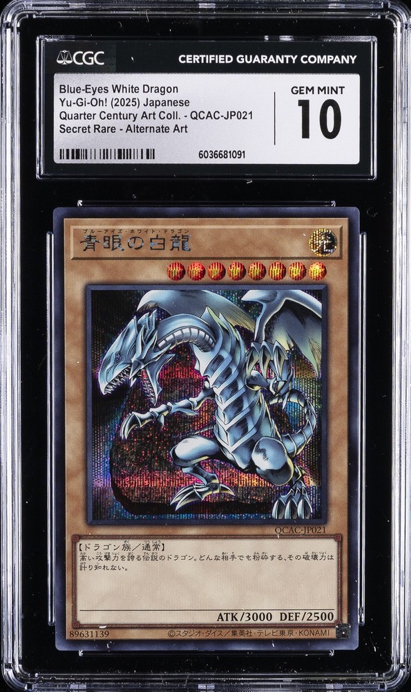 2025 YU-GI-OH! JAPANESE QUARTER CENTURY ART COLL. - SECRET RARE - ALT. ART #QCAC-JP021 BLUE-EYES WHITE DRAGON CGC 10 GEM MINT 2025 YU-GI-OH! JAPANESE QUARTER CENTURY ART COLL. - SECRET RARE - ALT. ART...