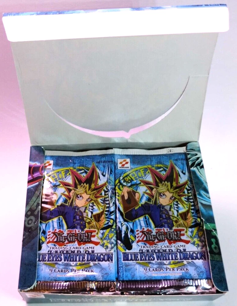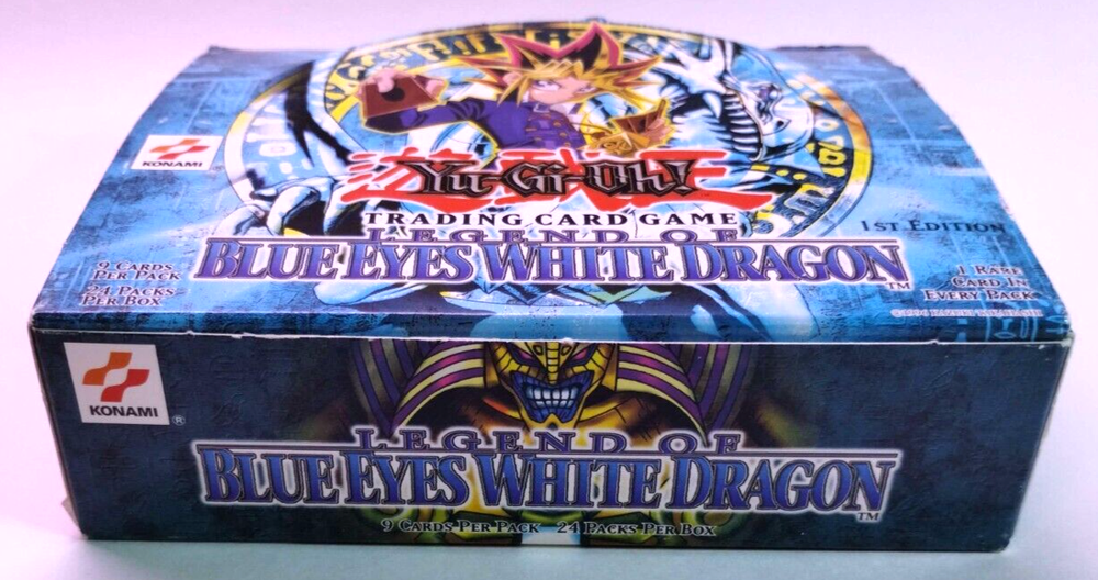 Legend of Blue Eyes 1st Edition Booster Box and All 24 Legend of Blue Eyes 1st Edition Booster Packs You will get the exact Booster Box and Booster Packs shown in the pictures. NOTE: You MUST have an established ebay account with feedback or the order will be cancelled. No new accounts. Packs have NOT been weighed.