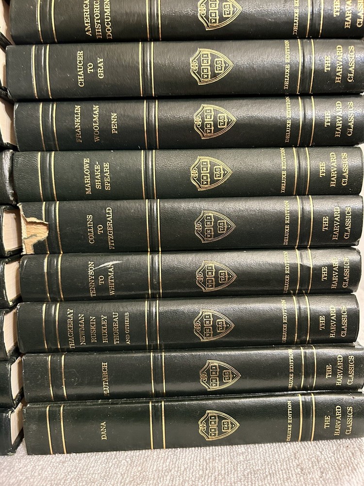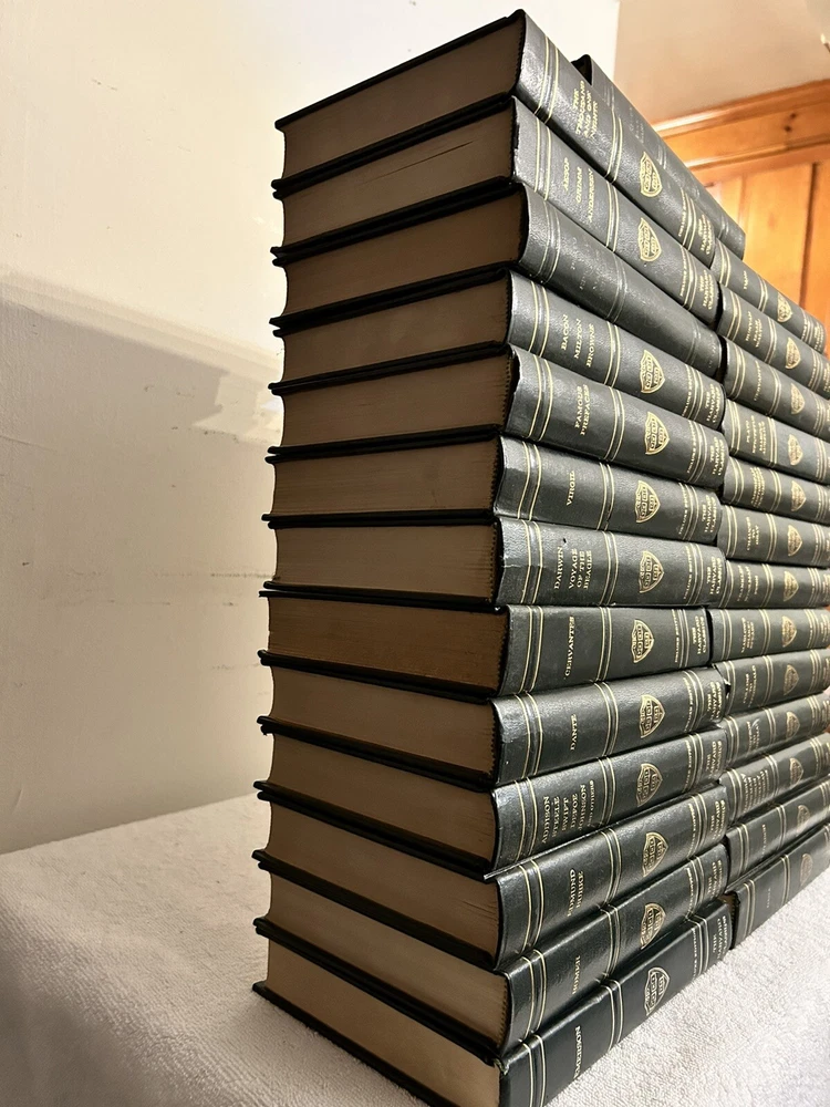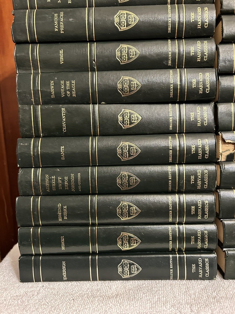This stunning set of The Harvard Classics is a treasure for any book lover! The green deluxe edition from the early 1900s looks fantastic on the shelf, with most volumes in near-perfect condition. A few have minor binding wear, but that just adds to their vintage charm. The collection is packed with timeless literature and knowledge—absolutely worth owning!