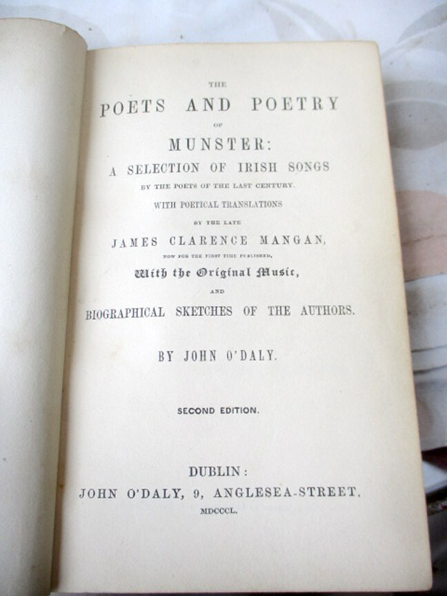 ENLARGED PICTURES!! Please scroll ALL the way down to view LARGER images. RW 23. 2 Volumes. 1st Series, 2nd Series. A Selection of Irish songs. With Poetical Translation by James Clarence Mongan. Biographical Sketches of Authors by John O’Daly. Pub. John O’Daly, Dublin. 1850. 2nd Edition. 16mo. 290 pages. 224 pages. Full leather with leather titles. Ribbed spines. Moderate wear. Strong, clean. Very Good Book condition. Very Good Book condition. Please do not hesitate to e-mail with any questions. As Always, Satisfaction Guaranteed! PAYMENT: PayPal, because eBay requires sellers to list electronic payments exclusively. I expect to receive payment within 10 days, unless we have made other arrangements. MEDIA MAIL: The majority of my books are sent Media Mail to U.S. customers. I add $1.00 for shipping materials, etc. (The shipping price that you see at the top of the page includes the handling fee.) PRIORITY MAIL: I will send both Media cost and Priority cost with invoice, on books which seem to warrant Priority service or when buyer requests it. I'm glad to combine multiple purchases in order to minimize shipping costs. I WILL SHIP INTERNATIONALLY, and I try to be as economical as possible with the shipping costs. Whenever a book will fit comfortably in a Priority Flat Rate Envelope, I'll send it that way. RETURN POLICY: Satisfaction Guaranteed! Payment I accept the following forms of payment: PayPal Shipping & Handling I'm glad to combine multiple purchases for less expensive shipping costs. US Shipping $5.00 USPS Media Mail® International Shipping $32.00 USPS Priority Mail International FREE scheduling, supersized images and templates. Get Vendio Sales Manager. FREE scheduling, supersized images and templates. Get Vendio Sales Manager. Over 100,000,000 served. Get FREE counters from Vendio today!