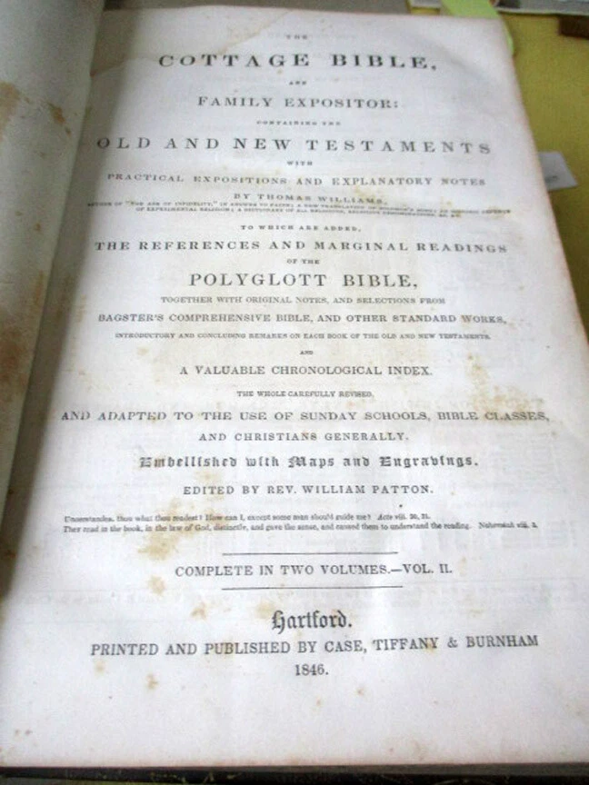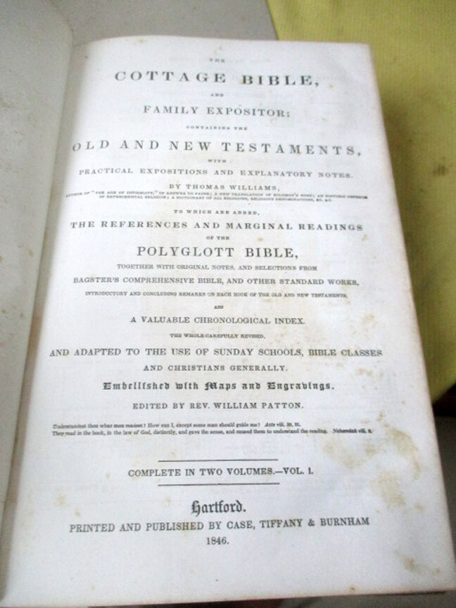 ENLARGED PICTURES!! Please scroll ALL the way down to view LARGER images. JT 300. Illustrated. 2 Volumes. Pub. Case, Tiffany & Burnham, Hartford, Connecticut. 1846. 11” X 7 1/2". Volume One, 736 pages, Full calf leather, recovered with black cloth with flower pattern, Printed double column. Maps at end, Bruise at foot of spine, Otherwise, Good condition. Volume Two. 737 – 1440 pages. Maps at the end. Unused family record. Oil cloth cover coming loose at front cover; can be re-attached or removed-Original leather is probably, Very Good condition. Please do not hesitate to e-mail with any questions. As Always, Satisfaction Guaranteed! PAYMENT: PayPal, because eBay requires sellers to list electronic payments exclusively. I expect to receive payment within 10 days, unless we have made other arrangements. MEDIA MAIL: The majority of my books are sent Media Mail to U.S. customers. I add $1.00 for shipping materials, etc. (The shipping price that you see at the top of the page includes the handling fee.) PRIORITY MAIL: I will send both Media cost and Priority cost with invoice, on books which seem to warrant Priority service or when buyer requests it. I'm glad to combine multiple purchases in order to minimize shipping costs. I WILL SHIP INTERNATIONALLY, and I try to be as economical as possible with the shipping costs. Whenever a book will fit comfortably in a Priority Flat Rate Envelope, I'll send it that way. RETURN POLICY: Satisfaction Guaranteed! Payment I accept the following forms of payment: PayPal Shipping & Handling I'm glad to combine multiple purchases for less expensive shipping costs. US Shipping Please check eBay's Shipping & Payment tab USPS Media Mail® International Shipping Please check eBay's Shipping & Payment tab USPS Priority Mail International FREE scheduling, supersized images and templates. Get Vendio Sales Manager. FREE scheduling, supersized images and templates. Get Vendio Sales Manager. Over 100,000,000 served. Get FREE counters from Vendio today!