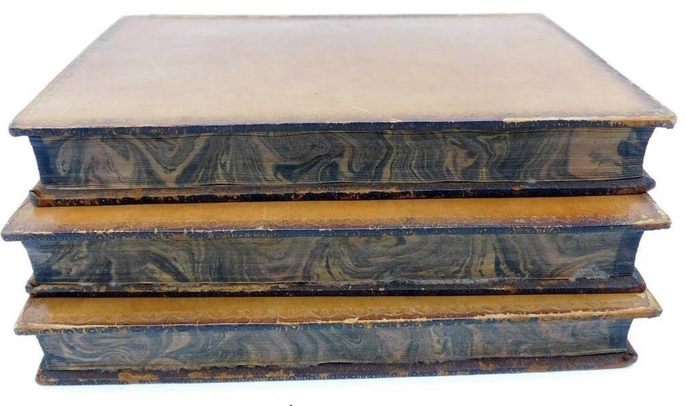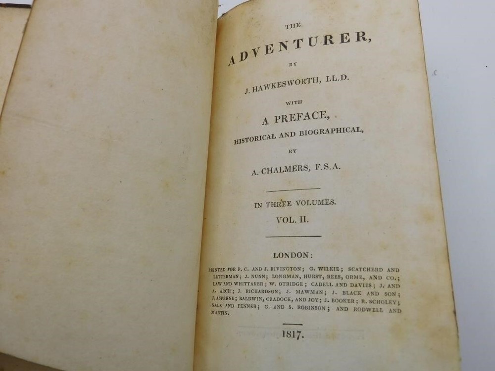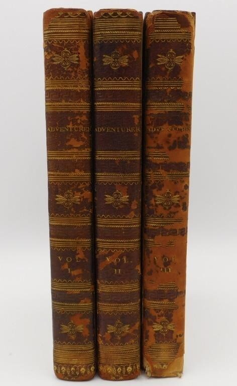 3 Beautiful Leather bound Vintage Books J. Hawkesworth The Adventurer 1817.