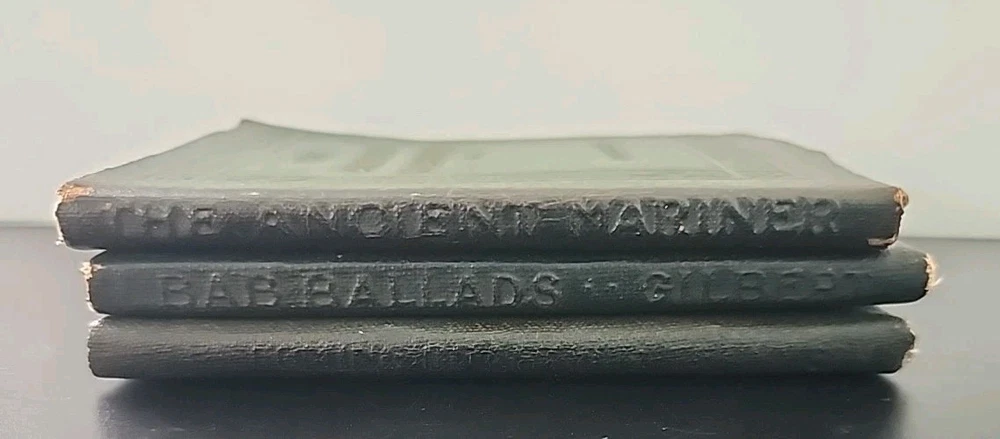 3 small green little leather library books titled "The Coming of Arthur" by Alfred Tennyson, "The Ancient Mariner" by Coleridge, "Bab Ballard" by W.S. Gilbert published between 1920 and 1924. These miniature books, measuring approximately 3.25 x 4 inches, were designed to make classic literature affordable and accessible. The "Redcroft" edition, to which this book belongs, is characterized by its brownish-green imitation leather cover with embossed designs. Key details about the book and its context: Publisher: Little Leather Library Corporation Edition: Likely "Redcroft" edition Publication Period: Between 1920-1924 Size: Approximately 3.25 x 4 inches Cover: Brownish-green imitation leather with embossed designs Availability: These books were initially sold at Woolworth's and later advertised in magazines like National Geographic. Collectibility: Due to their age and fragile nature, these books are considered collectible items. Condition: These books are in very, but are very delicate due to age. ****************************************************** CHECK PHOTOS/SCANS FOR COP Any questions please do not hesitate to ask THANK YOU FOR YOUR BUSINESS!! Inventory: BRB3 MH400 ******************************************************