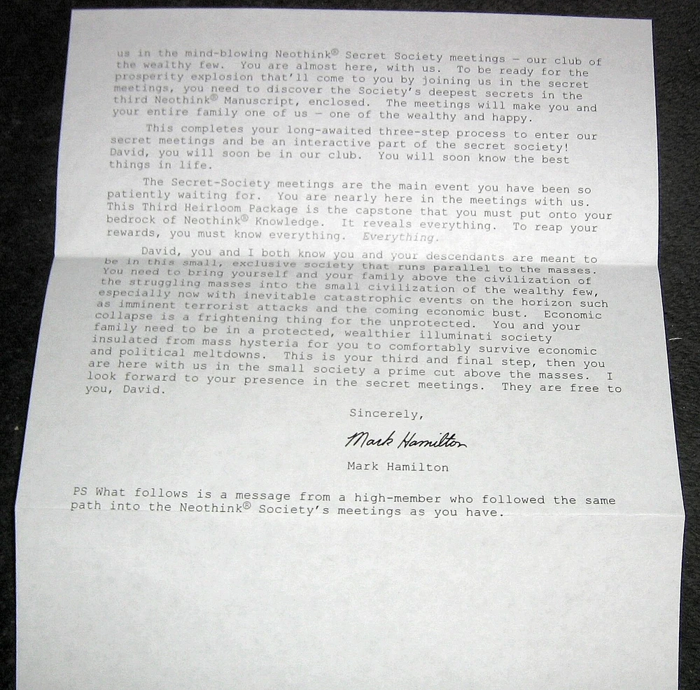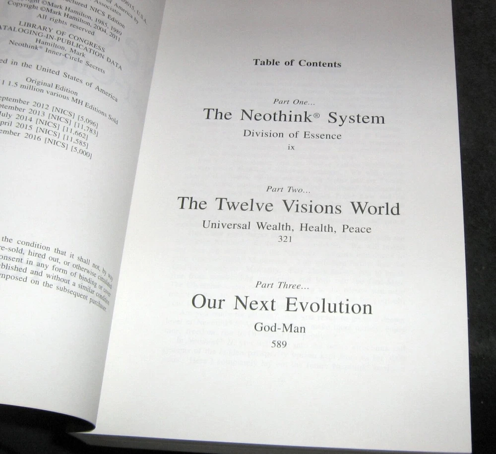 The Three Volume Set of NEOTHINK Inner Secrets Inner-Circle Secrets Superpuzzle Written by Mark Hamilton Volumes include original, signed promo letters from super-member Susan Rhodium and author Mark Hamilton introducing Neothink and offering membership in the Secret Society, leading to Peace, Wealth and Health. Condition: Books are very clean, like new. Thanks for Looking! Review by Jamie Barringer (Ravenmount) on Goodreads: While some parts of Hamilton's book Neothink: Superpuzzle get very repetitious and tedious, and I am not entirely convinced that he has captured real human psychology very well in his book sometimes, Hamilton introduces a lot of great ideas, many also championed by Ayn Rand. However, Hamilton presents these ideas in a far less confrontational and far more approachable manner. I really liked his model for education, though I think he and Rand and many other reformational thinkers underestimate the capacity of adults for education. I love Hamilton's educational model, but it need not be applied only towards children. Imagine what the world would be like if adults could do adult-education modules along the same lines as Hamilton's 12 fictional children enjoyed. Still, ideological debates aside, Neothink was a good book, well worth reading, and especially for anyone still ruminating over Ayn Rand's books and ideas. Amazon Review: Superpuzzle is unlike any other publication in existence. It brings the reader into a new world of health, peace, prosperity and love. It awakens the child of the past within, and illustrates the magnificent way life ought to be for everyone who produces values for society. This story will inspire you to create that wonderful new world here and now. The book is both a blueprint and a masterful piece of artwork. Mark Hamilton has done humanity a great service in creating it - a task that took him nine years of his life. And now, the Neothink Society and Twelve Visions Party movements will actualize the world depicted within the pages of Superpuzzle. Humanity will rise into a golden age of peace, health, and wealth.