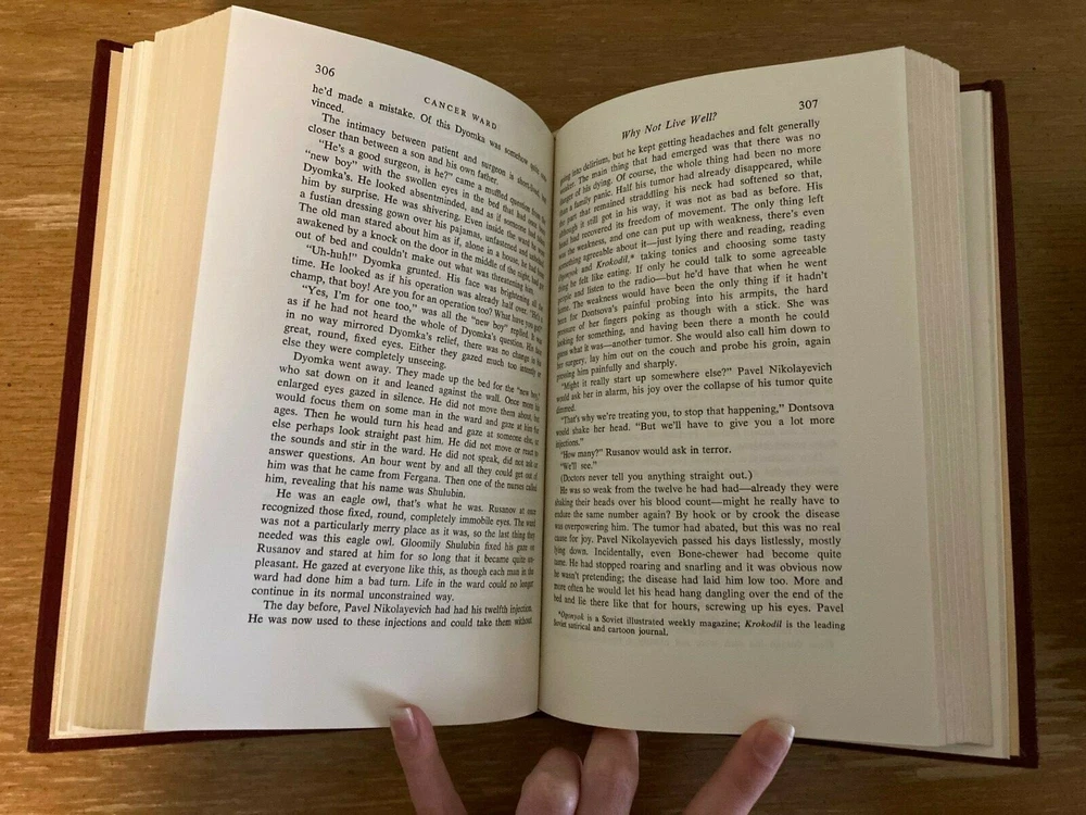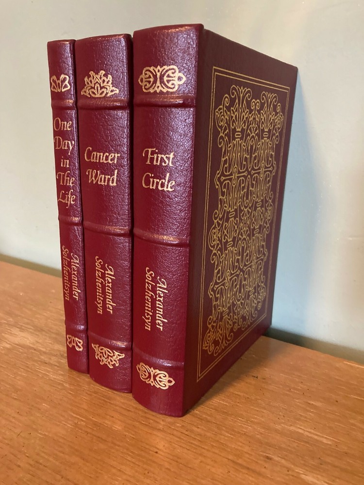 Three volume set of Alexander Solzhenitsyn's One Day in The Life, First Circle, and Cancer Ward . The first two are in excellent condition and Cancer Ward is in very good condition. All three books are leather bound by Easton Press and unread.